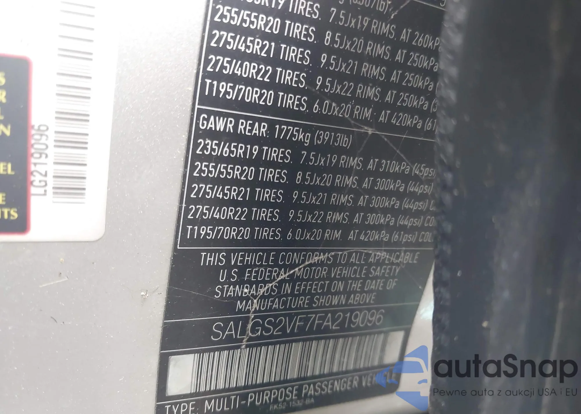 LOT: 39996885 VIN: SALGS2VF7FA219096