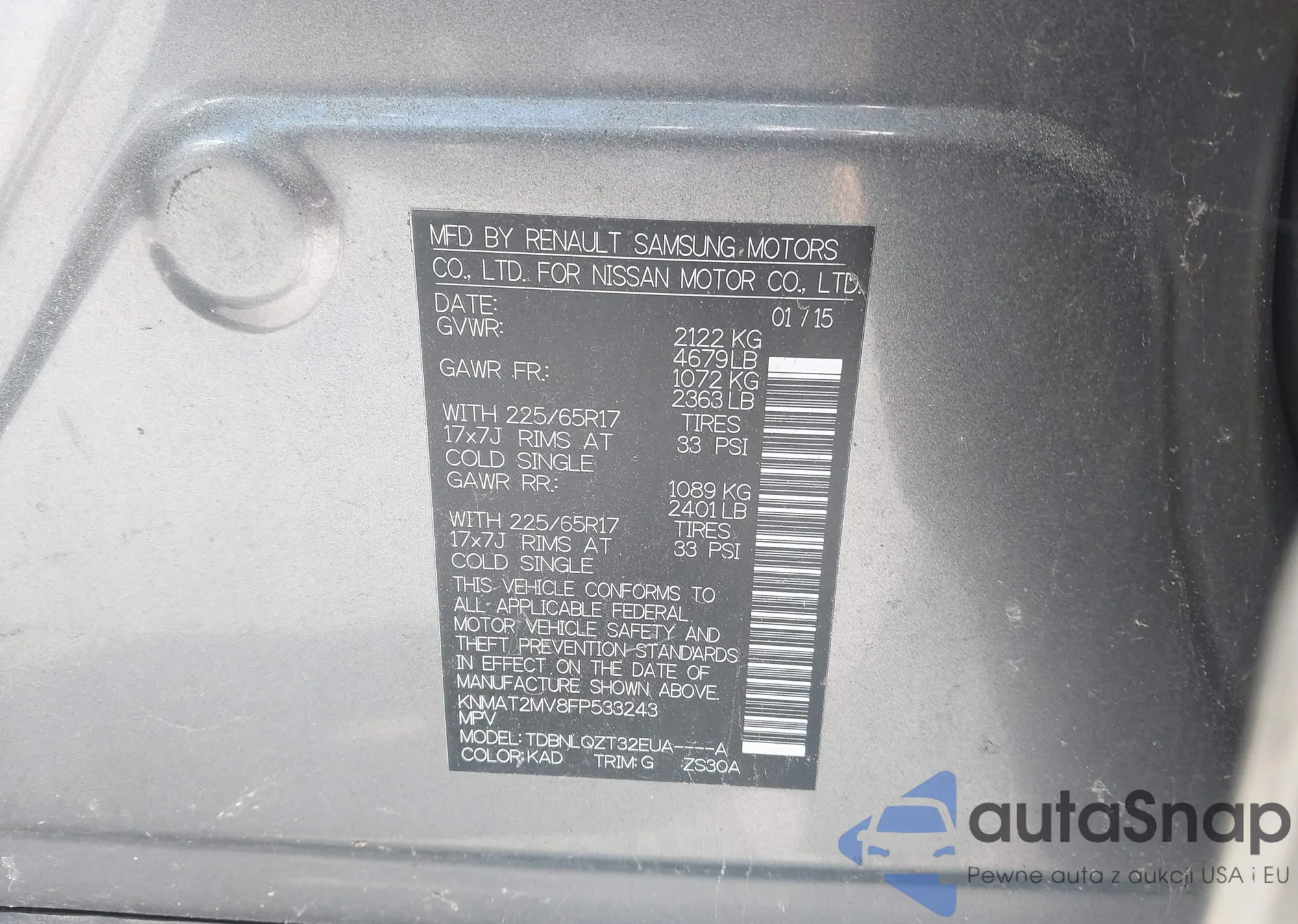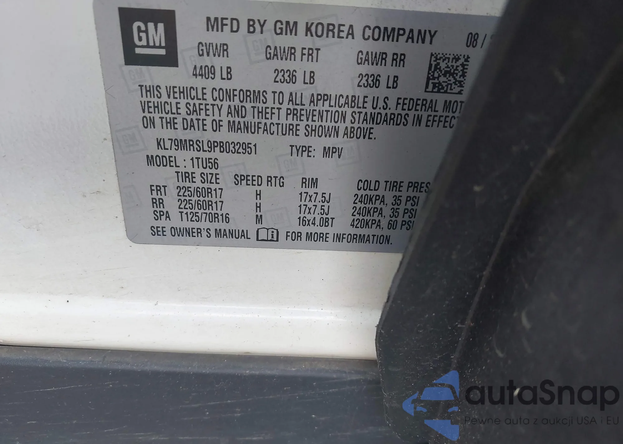 • VIN KL79MRSL9PB032951