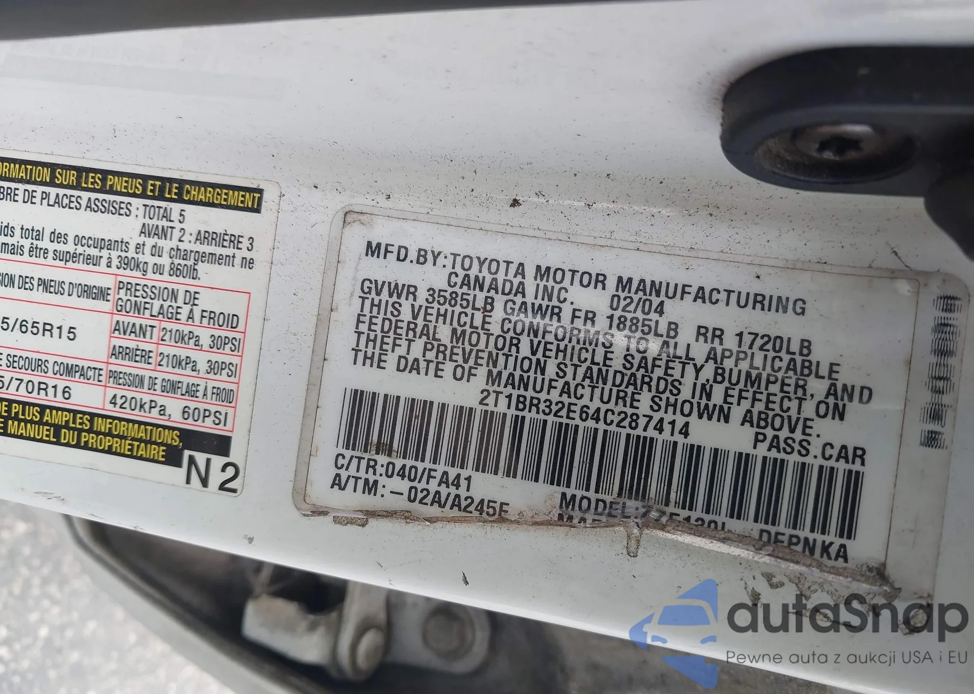 • VIN KNAE45LC2J6027001