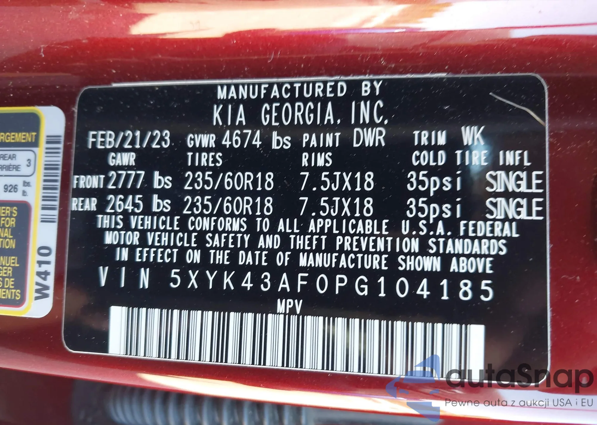 • VIN 5XYK43AF0PG104185
