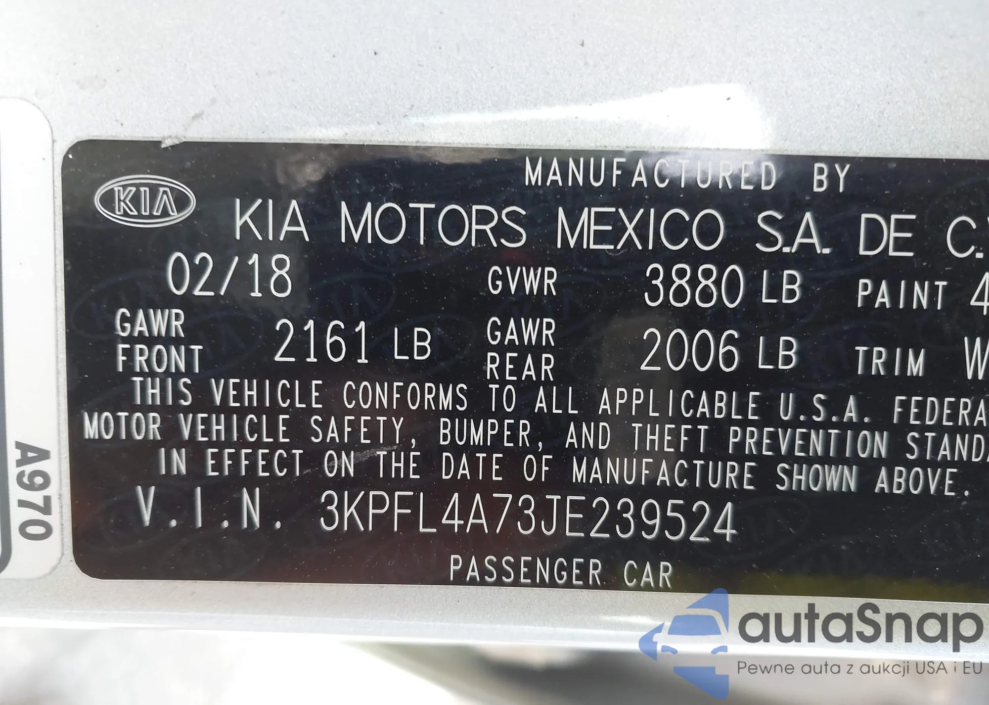 LOT: 42561864 VIN: KNAE45LC2J6027001