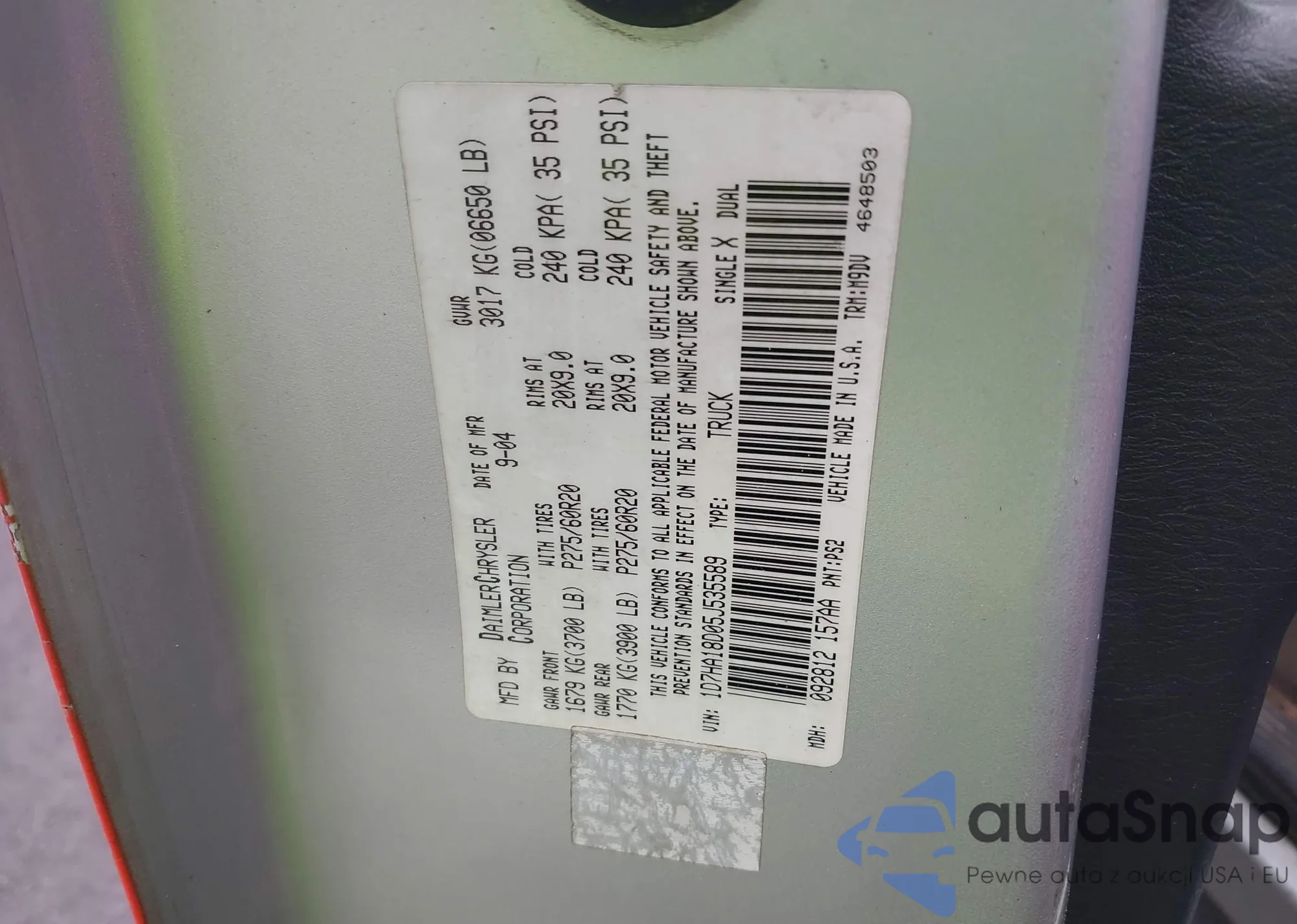 LOT: 43061903 VIN: 1D7HA18D05J535589
