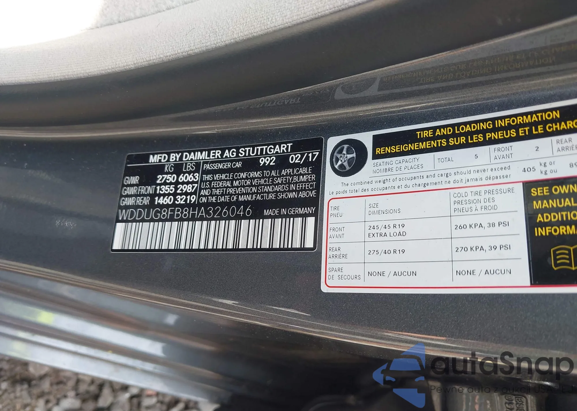 • VIN WDDUG8FB8HA326046