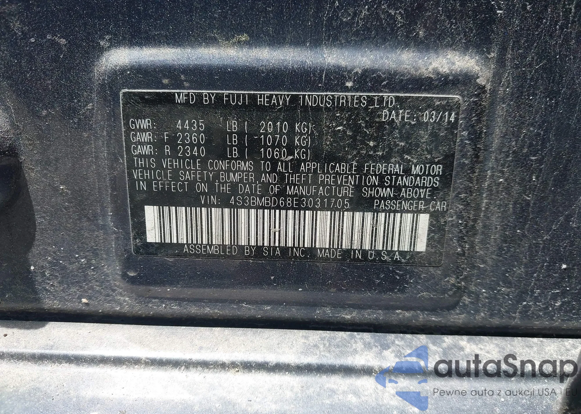 LOT: 42658330 VIN: 4S3BMBD68E3031705