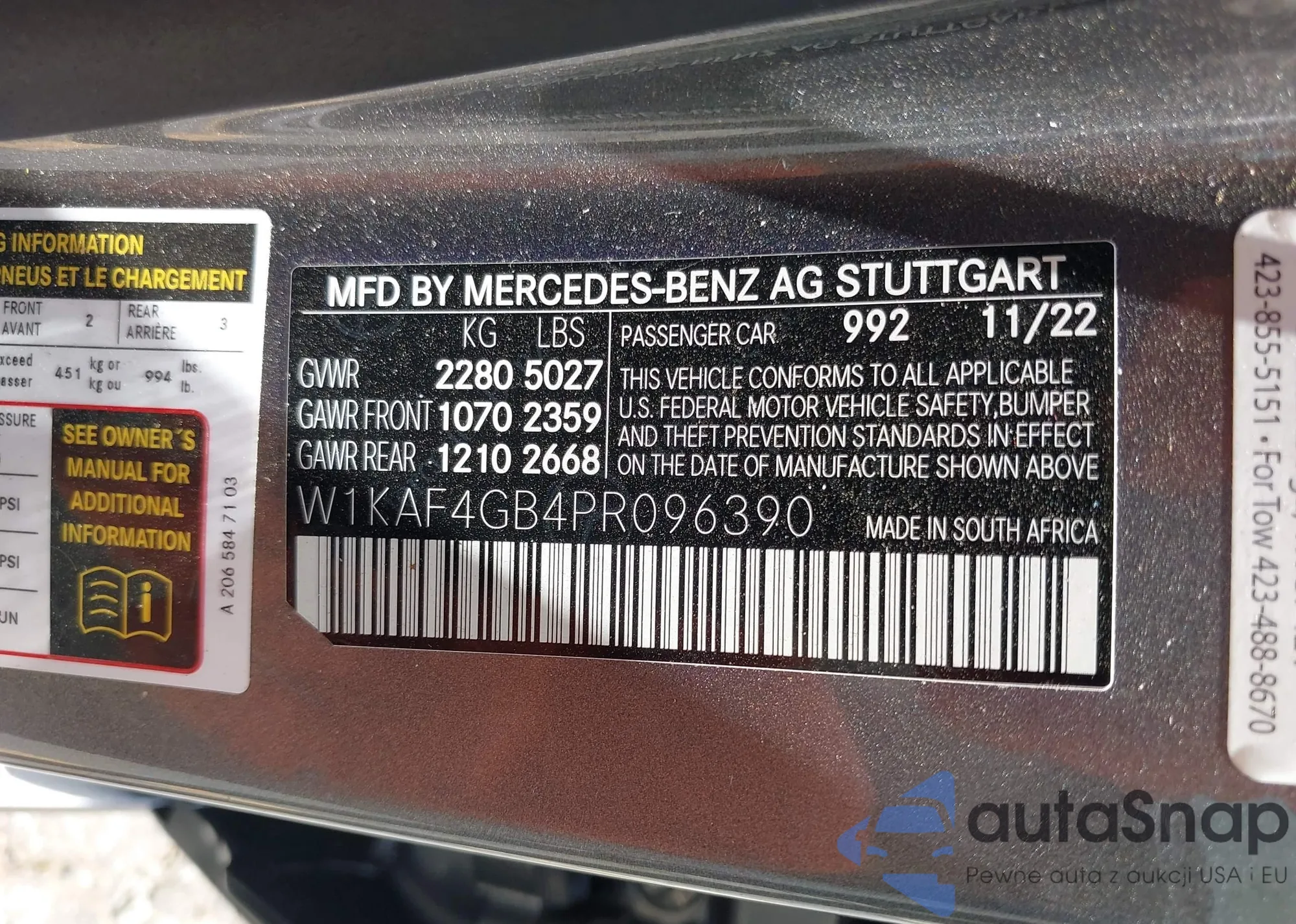 • VIN W1KAF4GB4PR096390