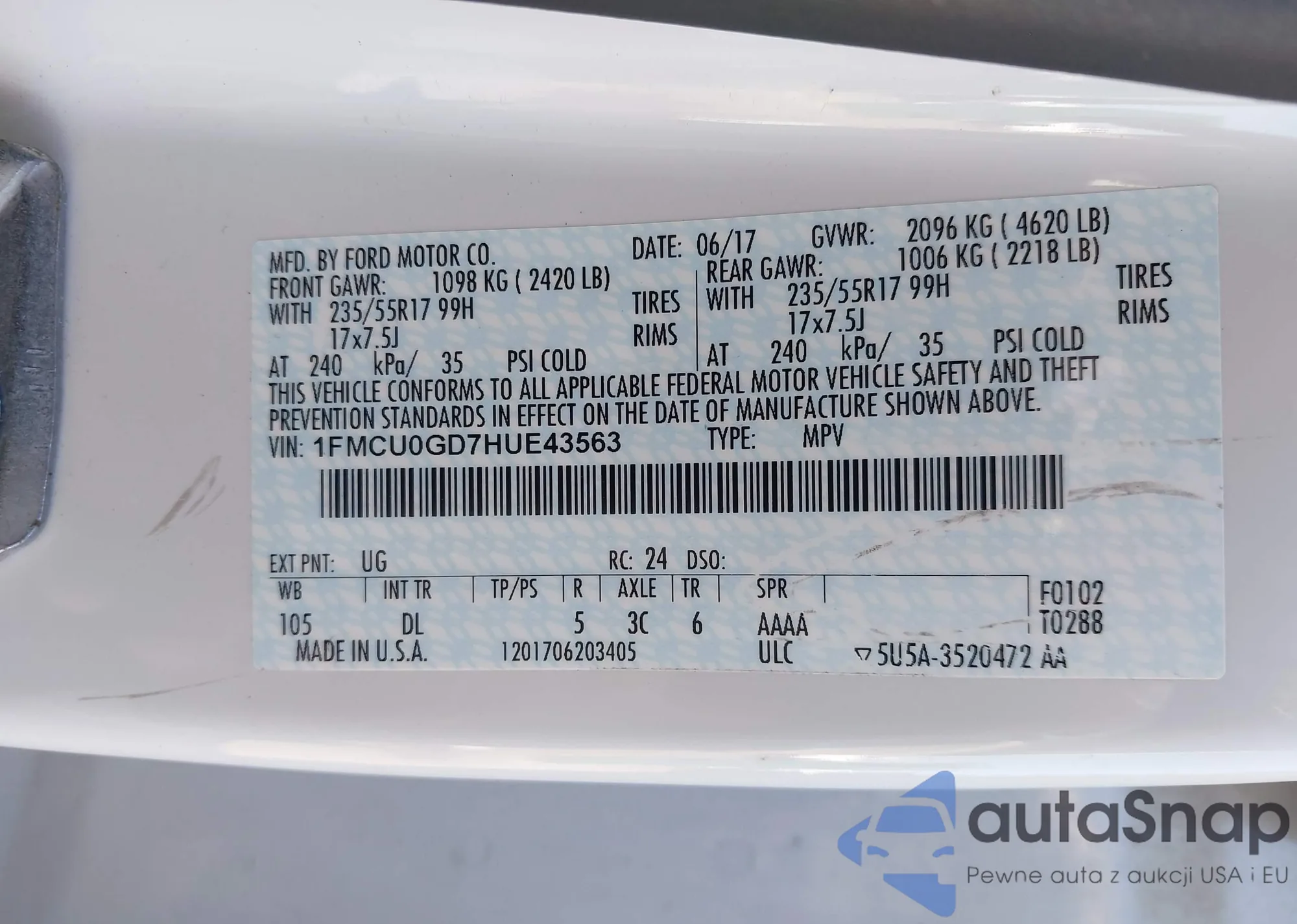 • VIN 1FMCU0GD7HUE43563