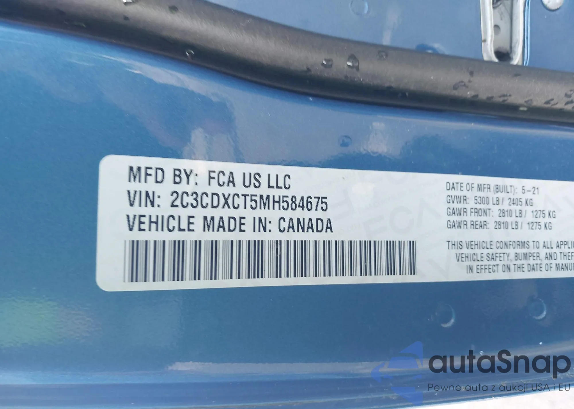 • VIN 2C3CDXCT5MH584675