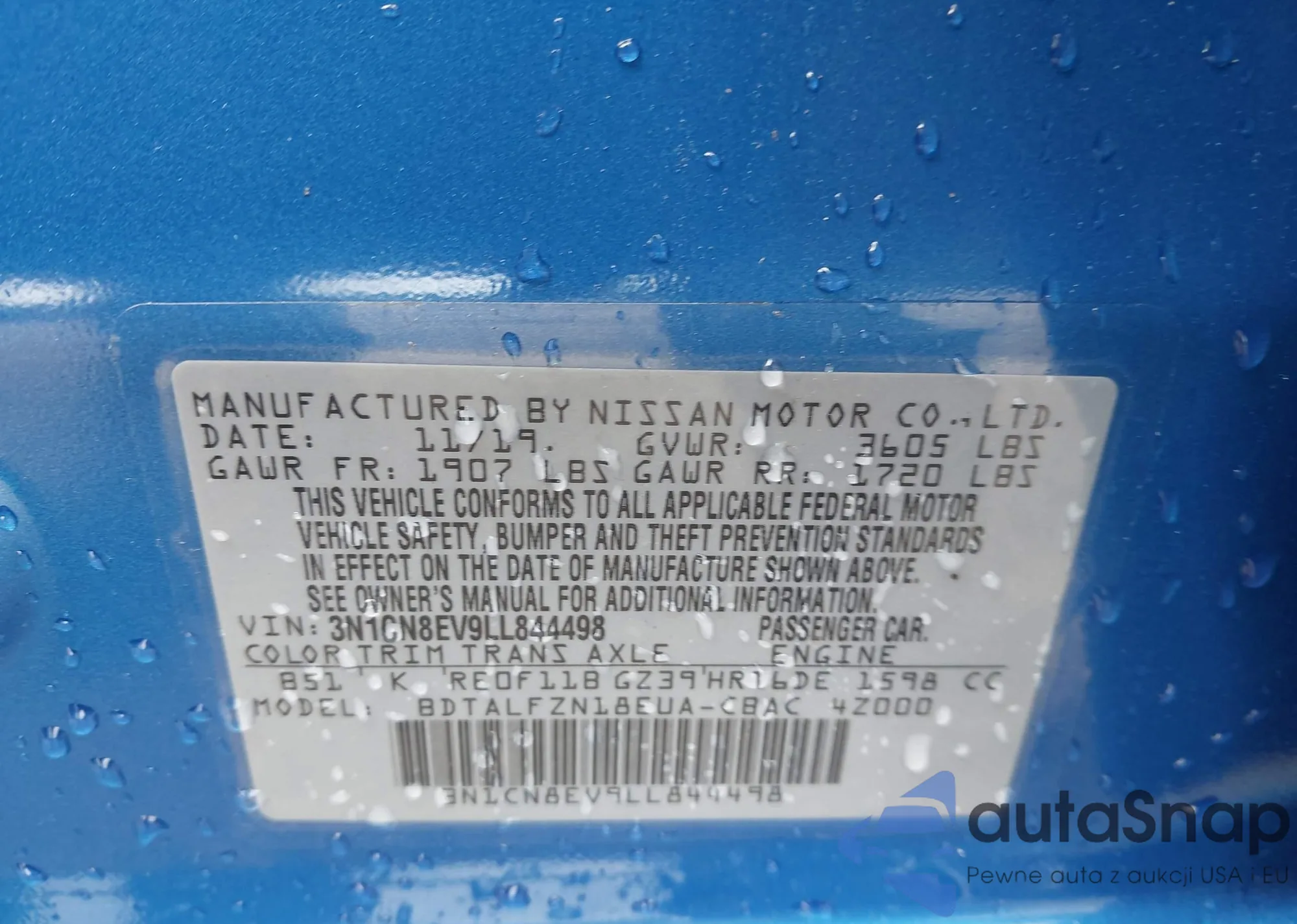 • VIN 3N1CN8EV9LL844498