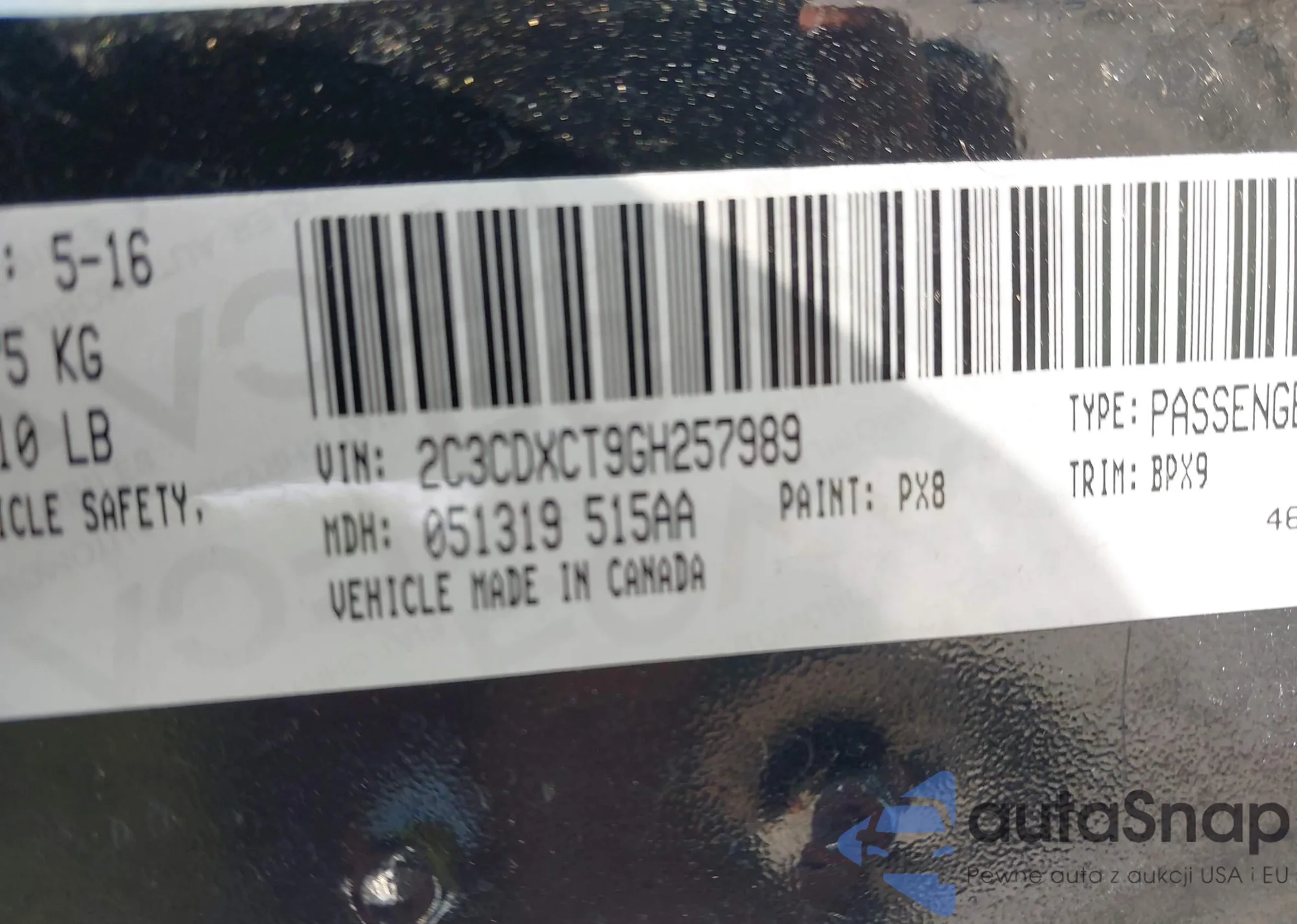 • VIN 2C3CDXCT9GH257989