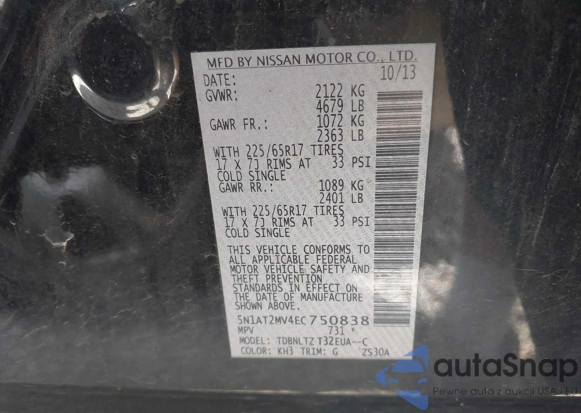 LOT: 43088013 VIN: 5N1AT2MV4EC750838