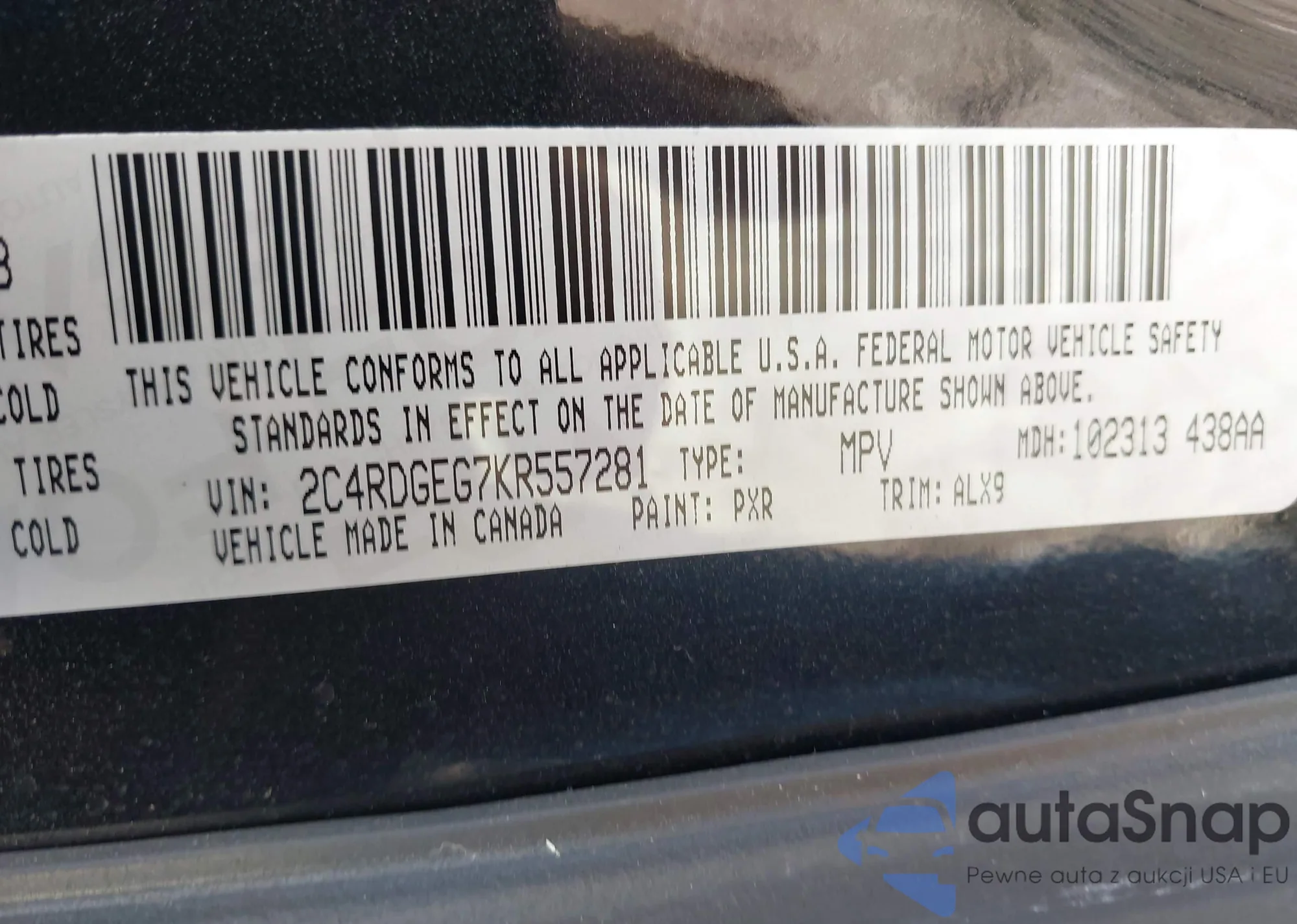 • VIN 2C4RDGEG7KR557281