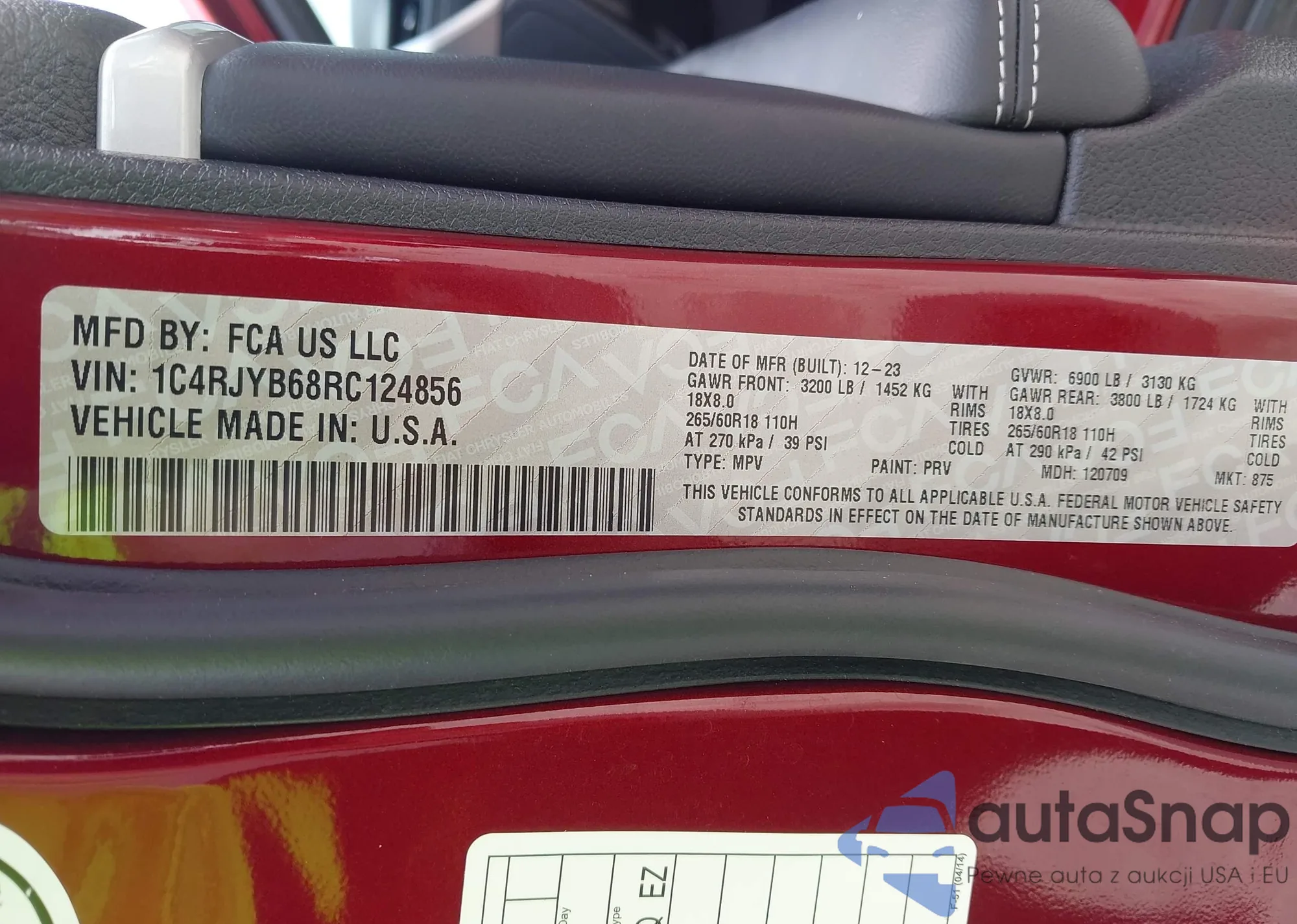 • VIN 1C4RJYB68RC124856