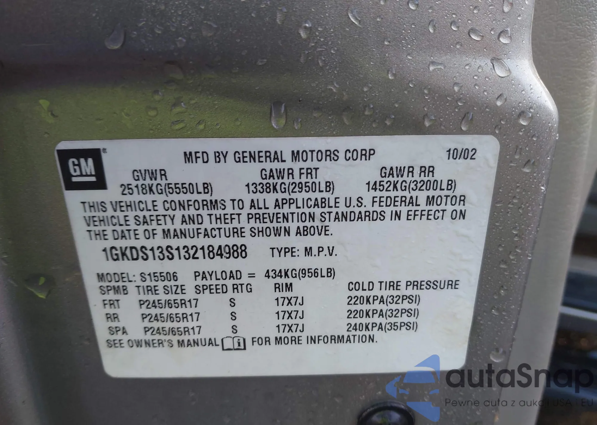 LOT: 43119754 VIN: 1FAFP55S63G276262