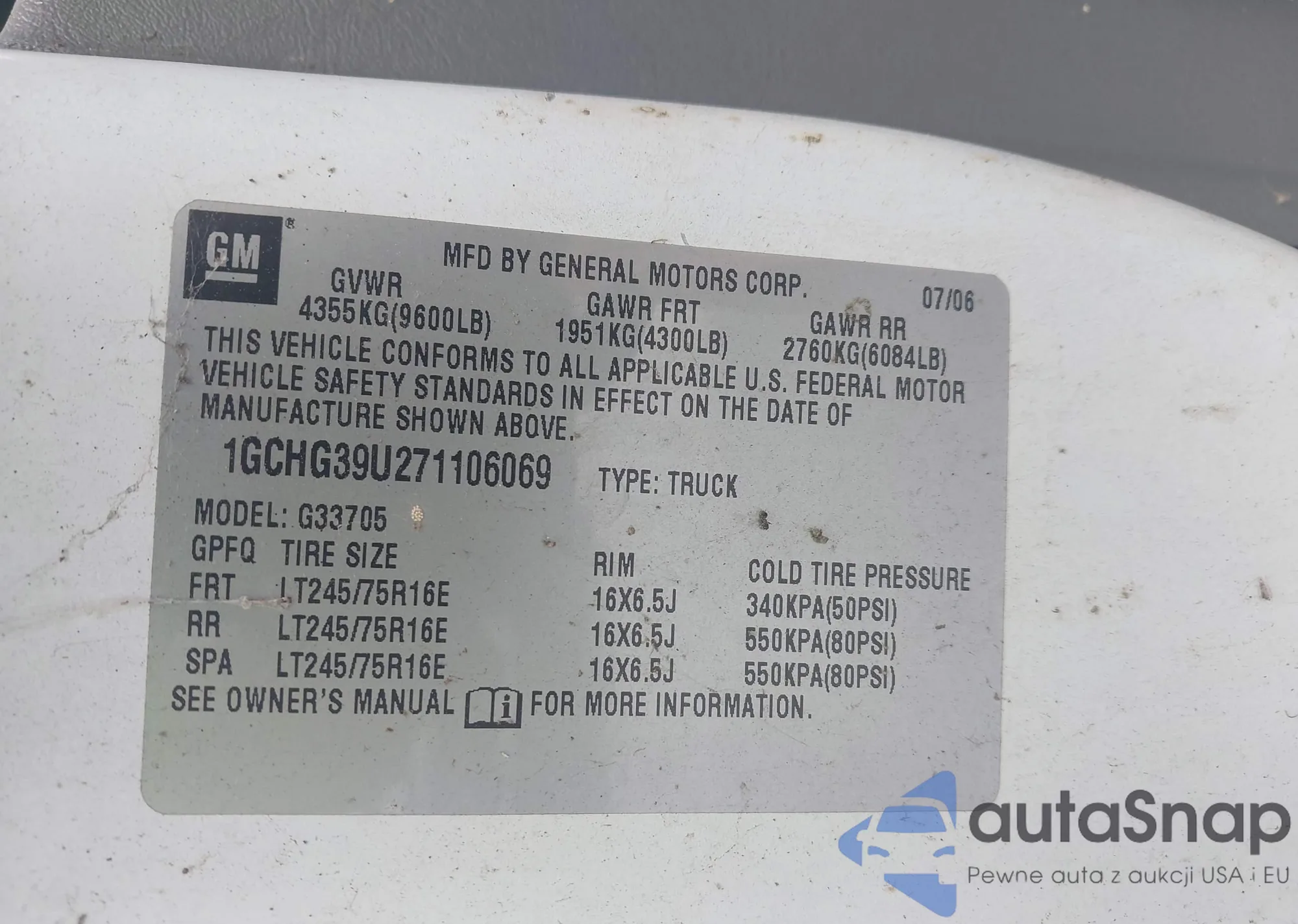 • VIN 1GCHG39U271106069