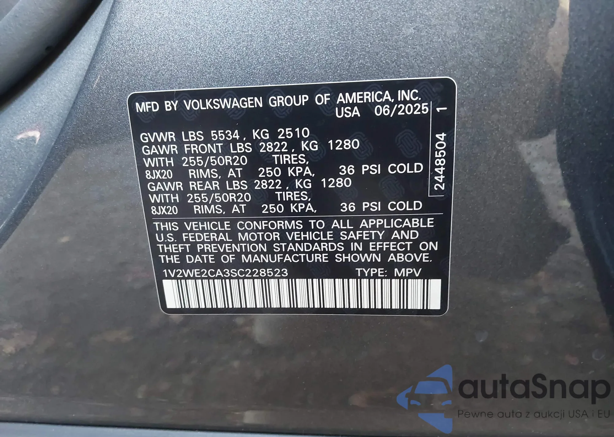 • VIN 5J8YE1H39SL024812