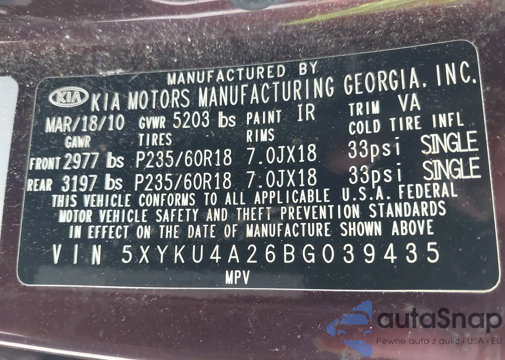 LOT: 43020305 VIN: 5XYKU4A26BG039435