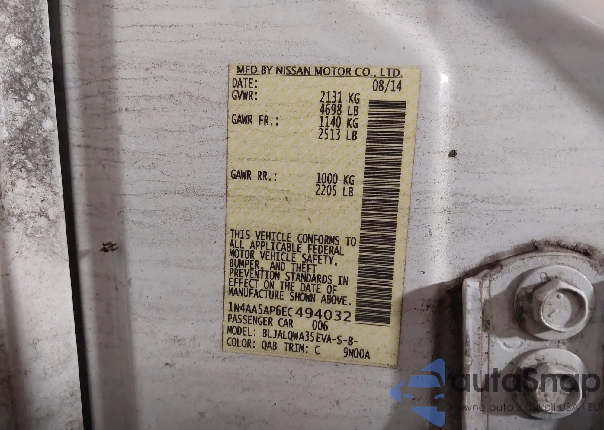 LOT: 43037722 VIN: 1N4AA5AP6EC494032