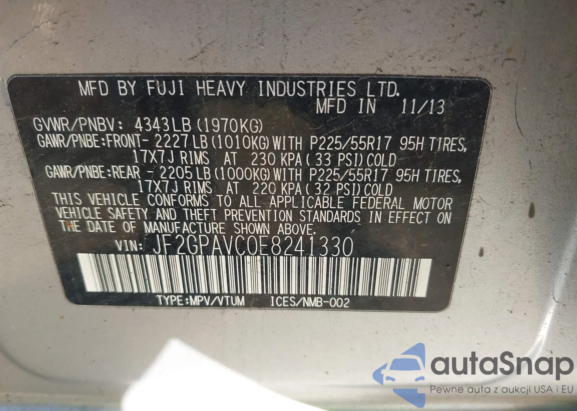 LOT: 43036123 VIN: 5YFBU4EE2DP185169