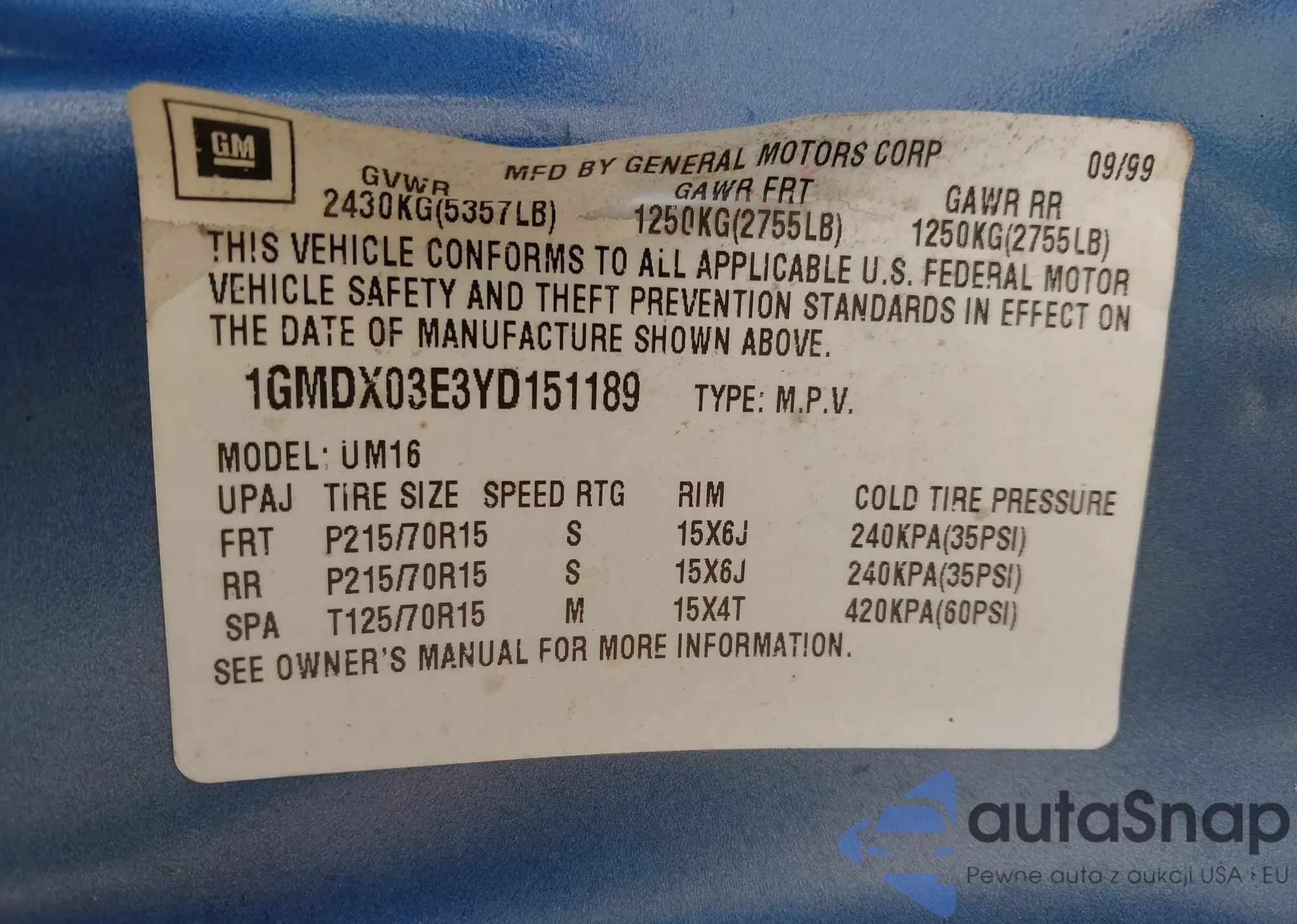 • VIN 4S3GTAM6XM3713986