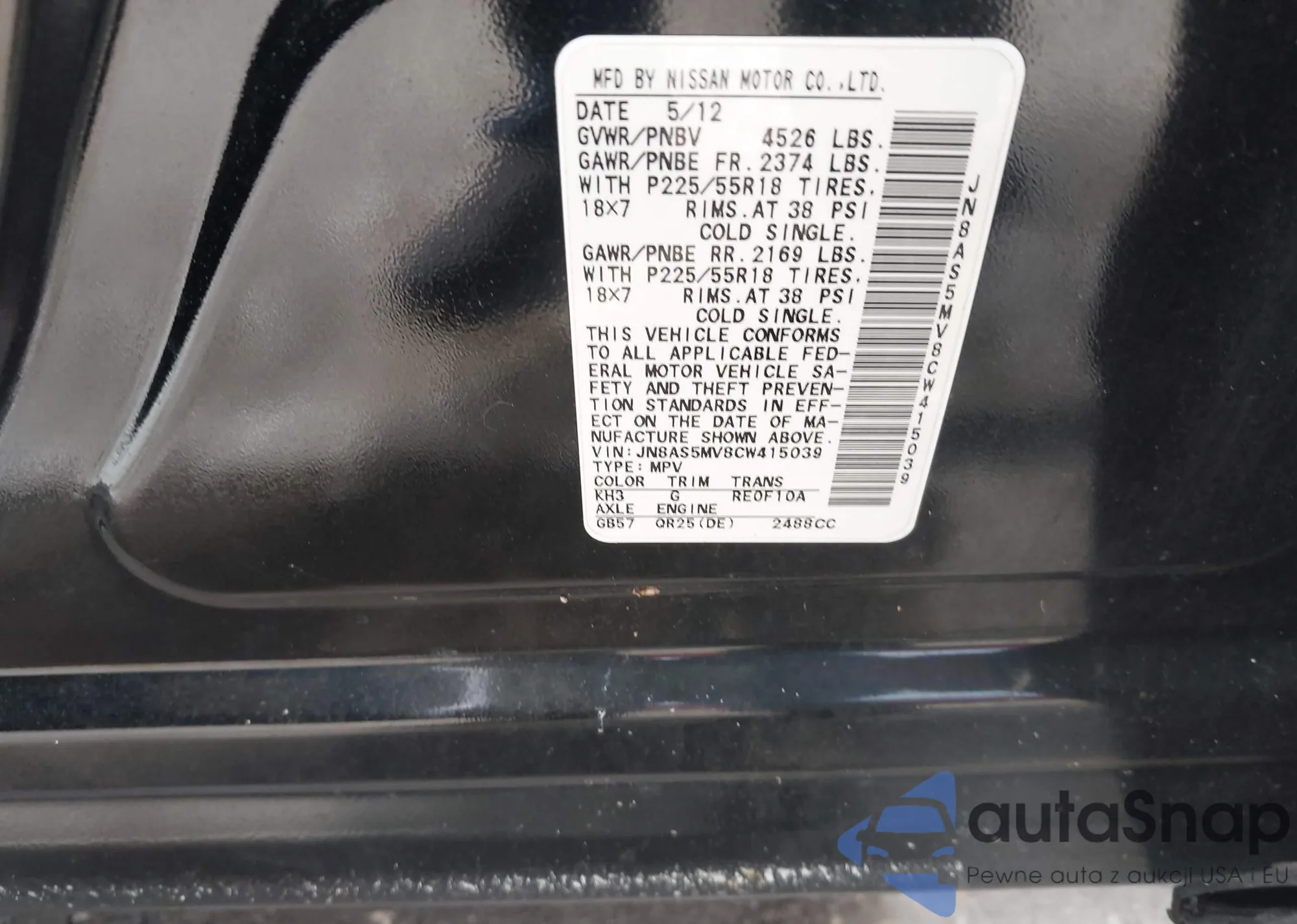 • VIN JN8AS58V58W145396