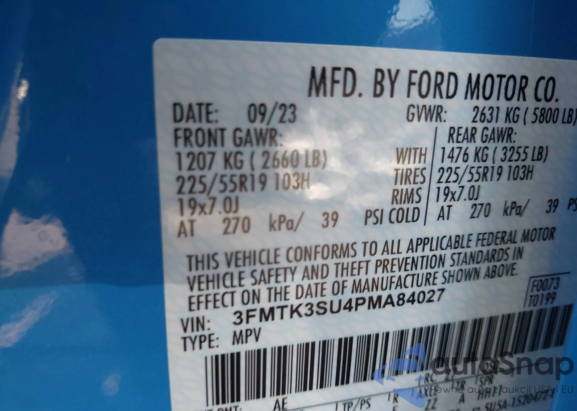 LOT: 42559978 VIN: 3FMTK3SU4PMA84027