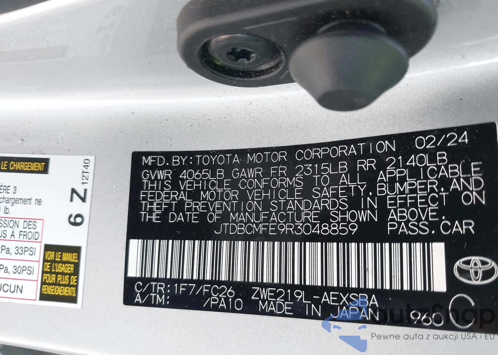 LOT: 42909222 VIN: JTDKARFP1L3150300