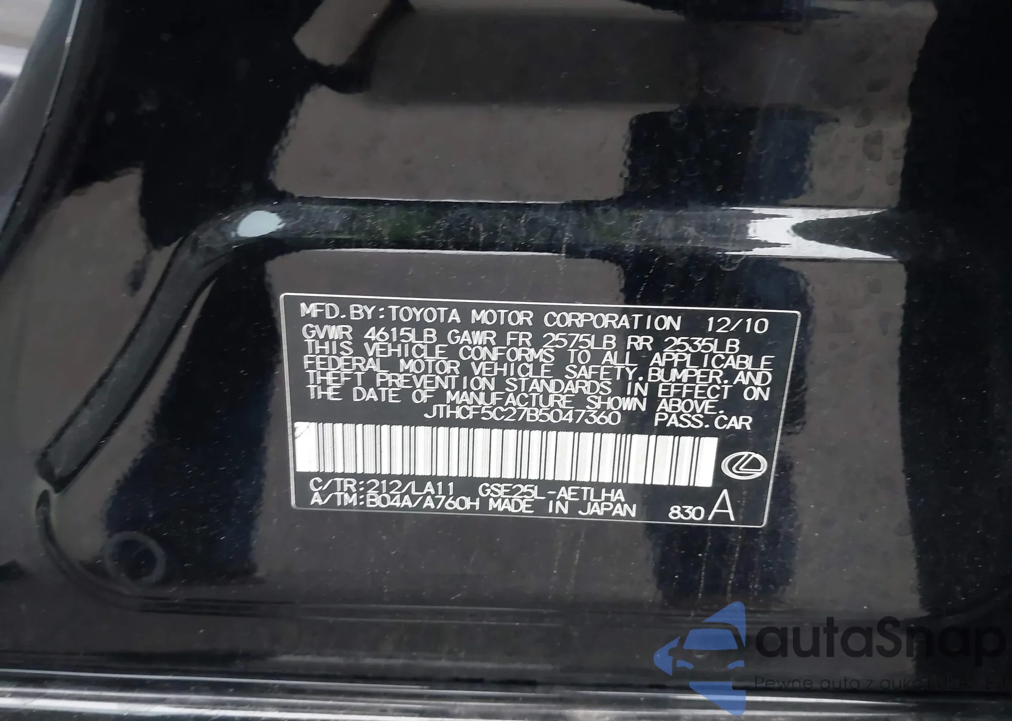 • VIN 4T1DBADK3SU009702