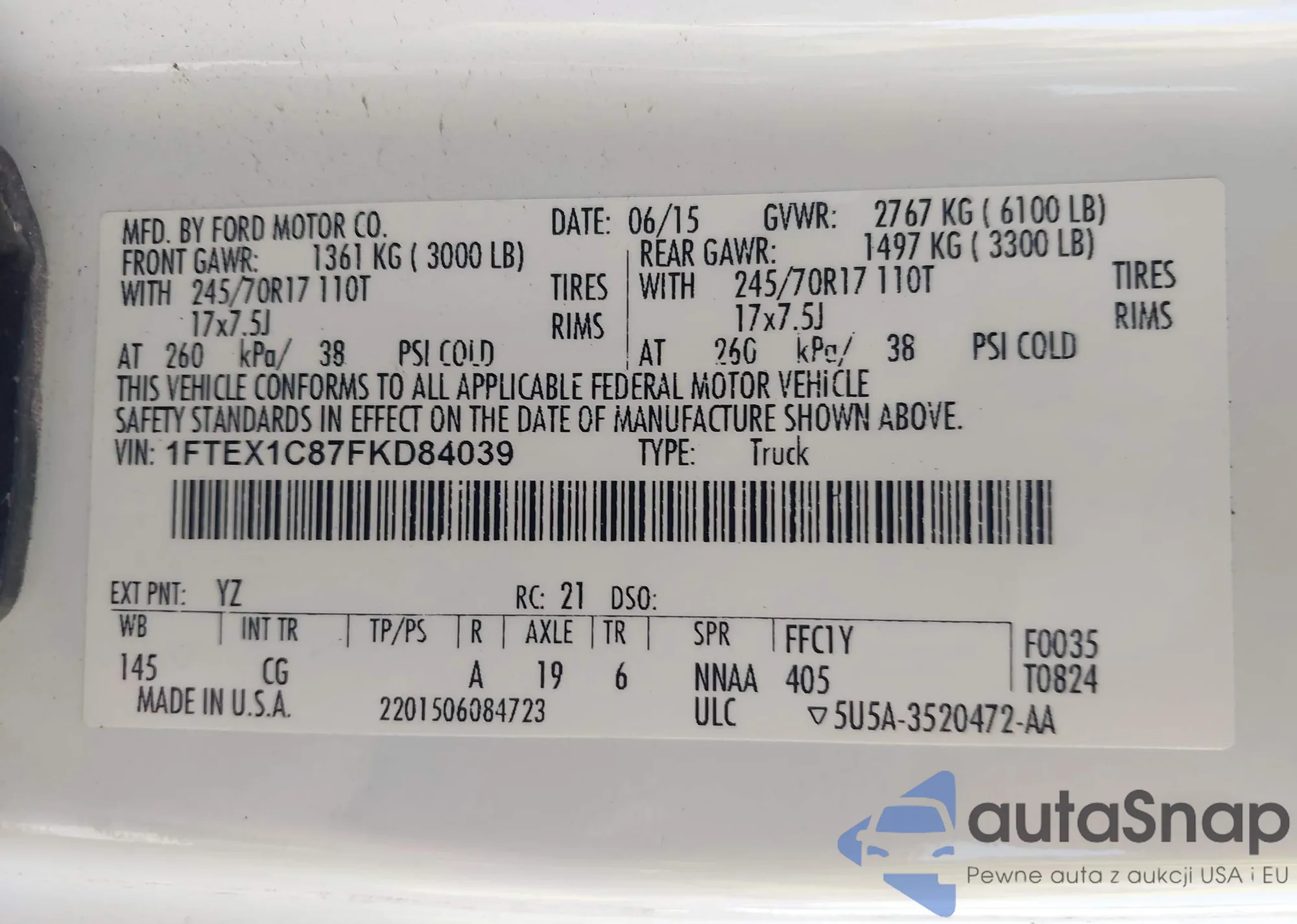 LOT: 43012137 VIN: 1FTEX1C87FKD84039