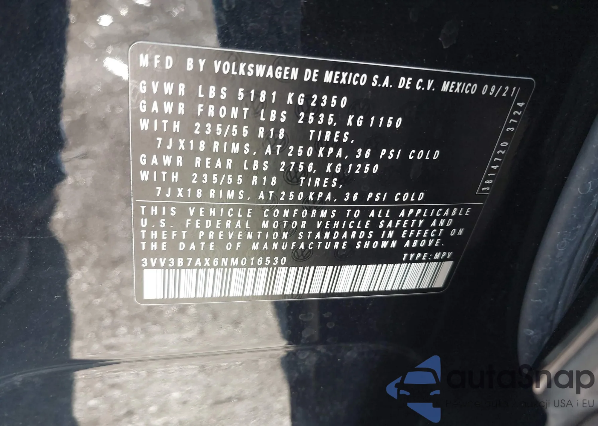 • VIN 3VV3B7AX6NM016530