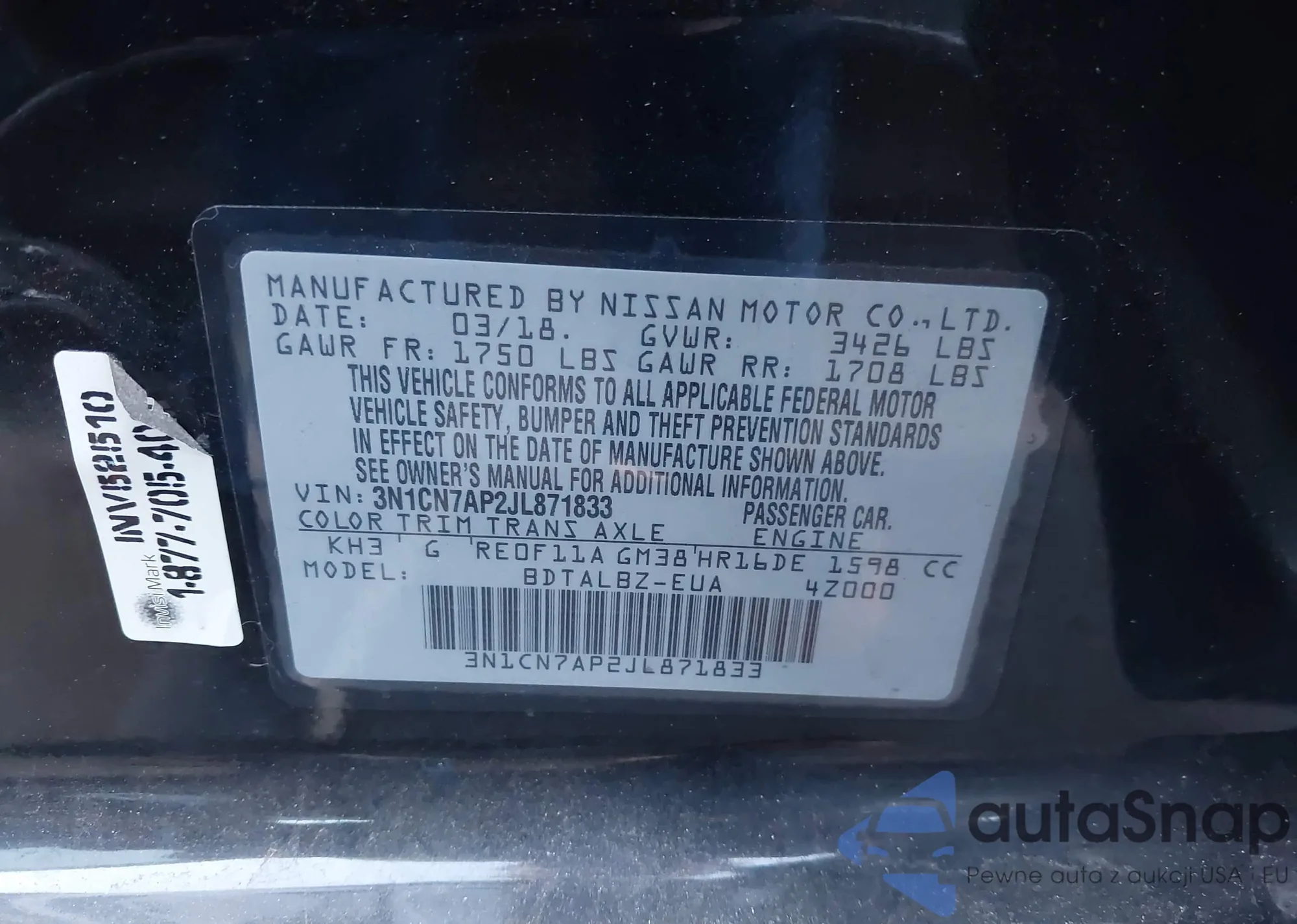 • VIN 3N1CN7AP2JL871833