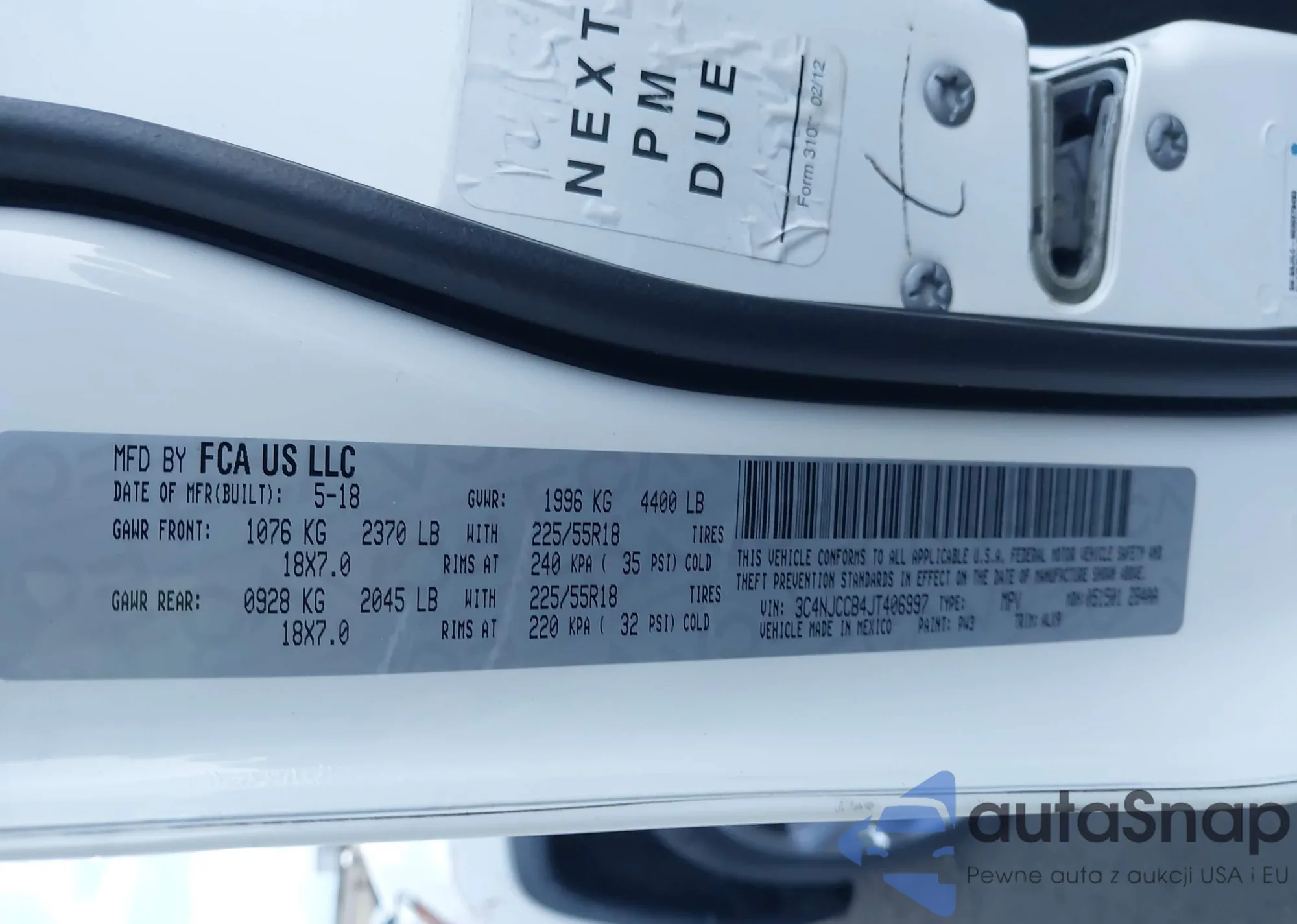 • VIN 3C4NJCCB4JT406997
