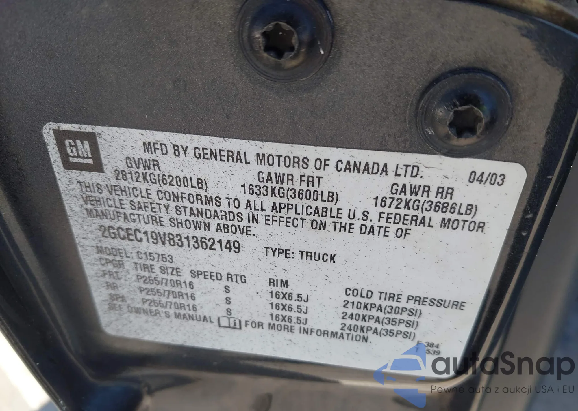 • VIN 2GCEC19V831362149