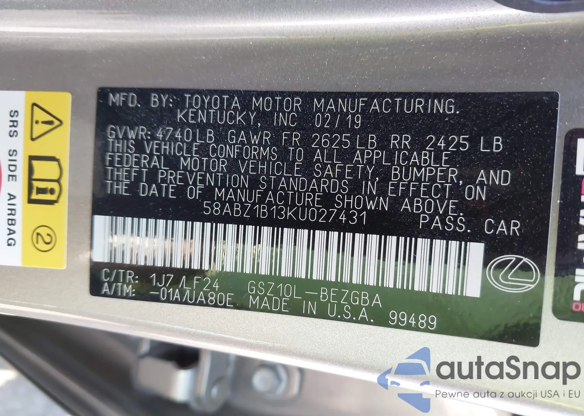 • VIN 58ABZ1B13KU027431