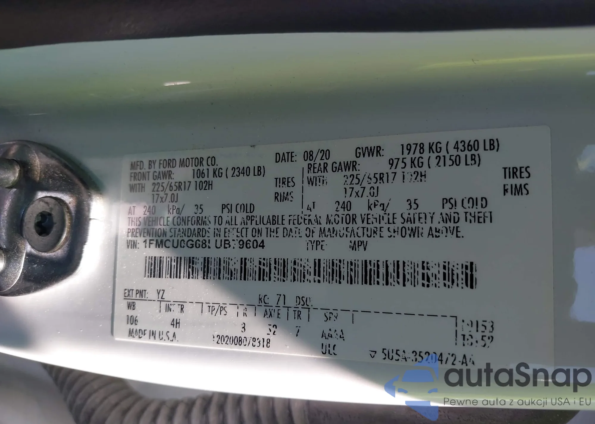 LOT: 43185070 VIN: 1FMCU0G68LUB79604