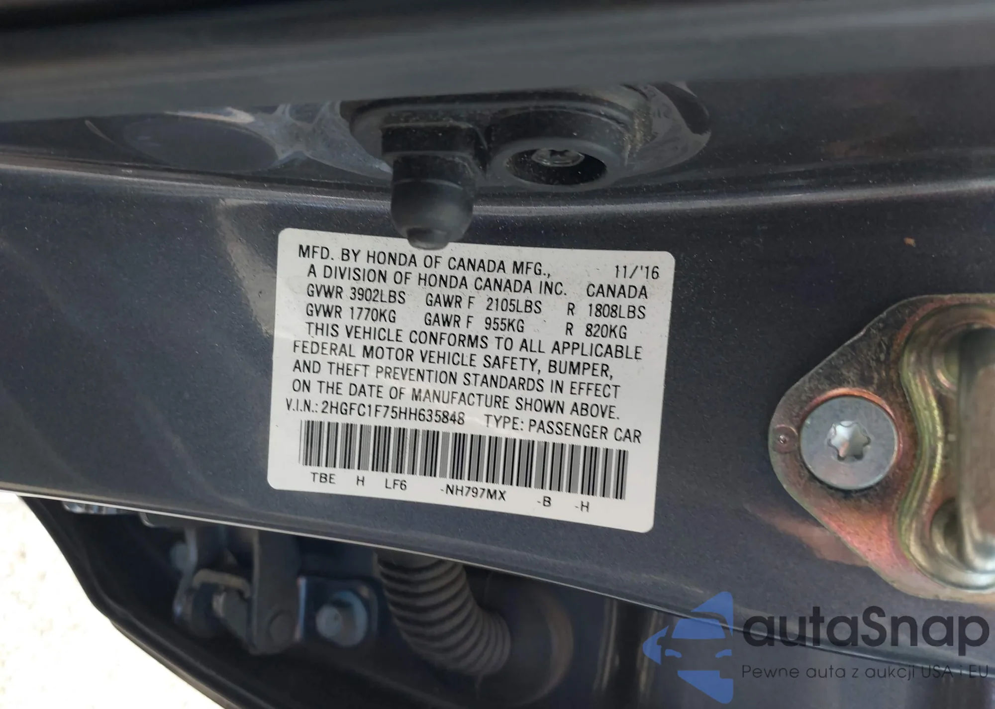 LOT: 43215339 VIN: 2HGFC1F75HH635848