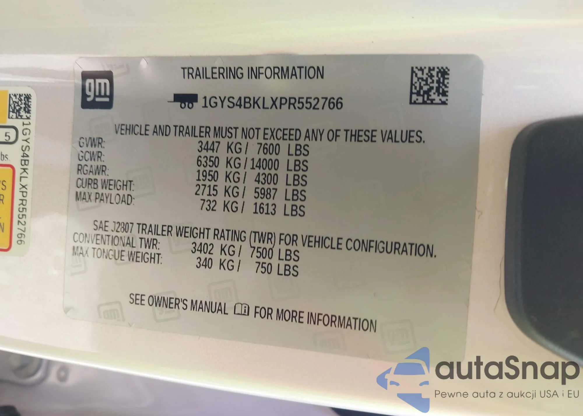 • VIN 1GYS4BKLXPR552766