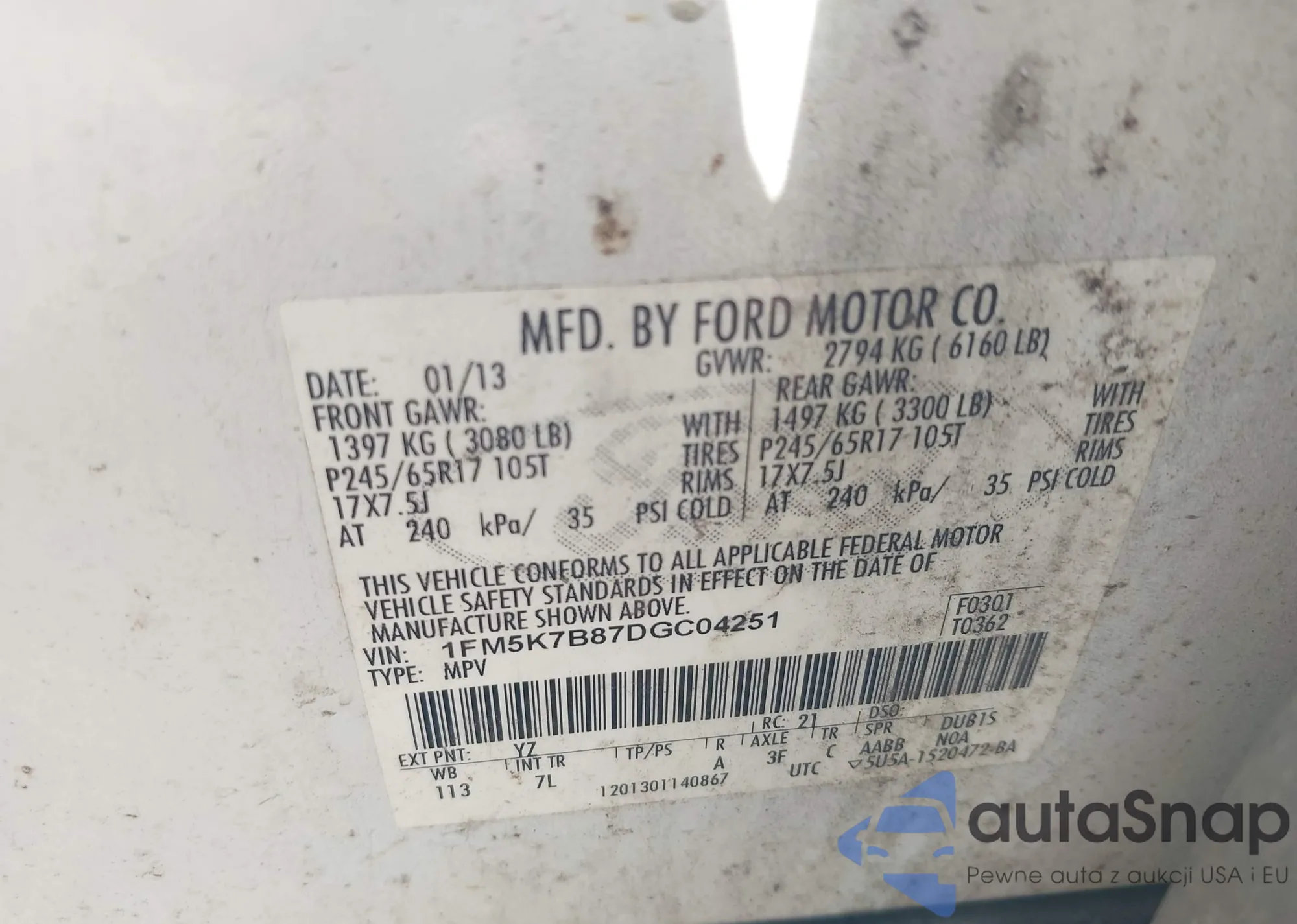 • VIN 1FM5K7B87DGC04251