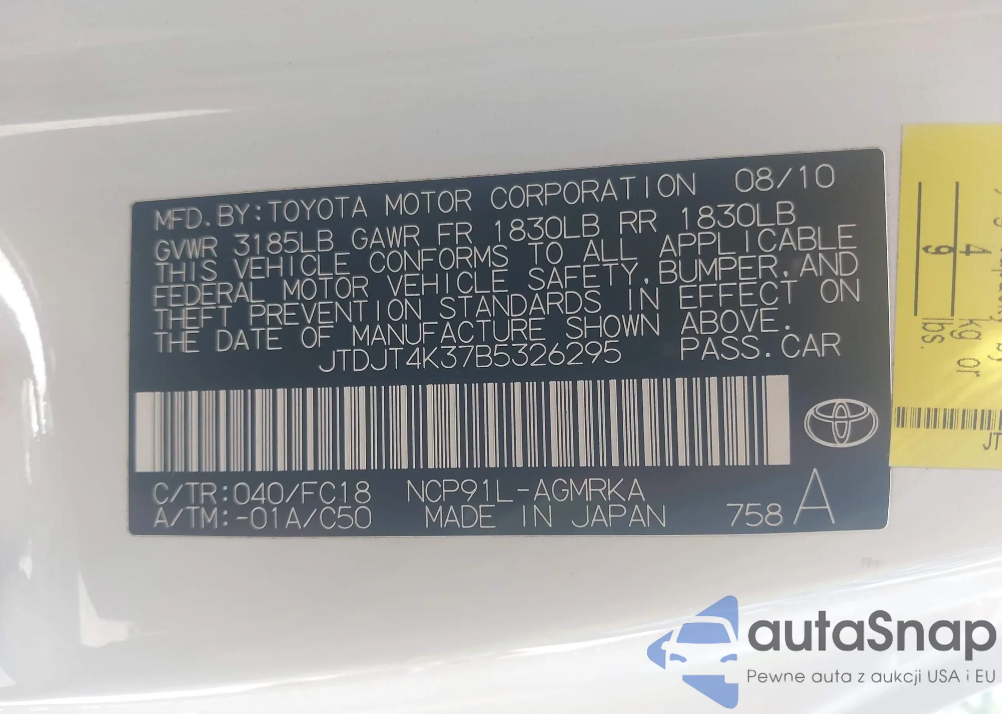 • VIN 4T1BF1FK8FU100446