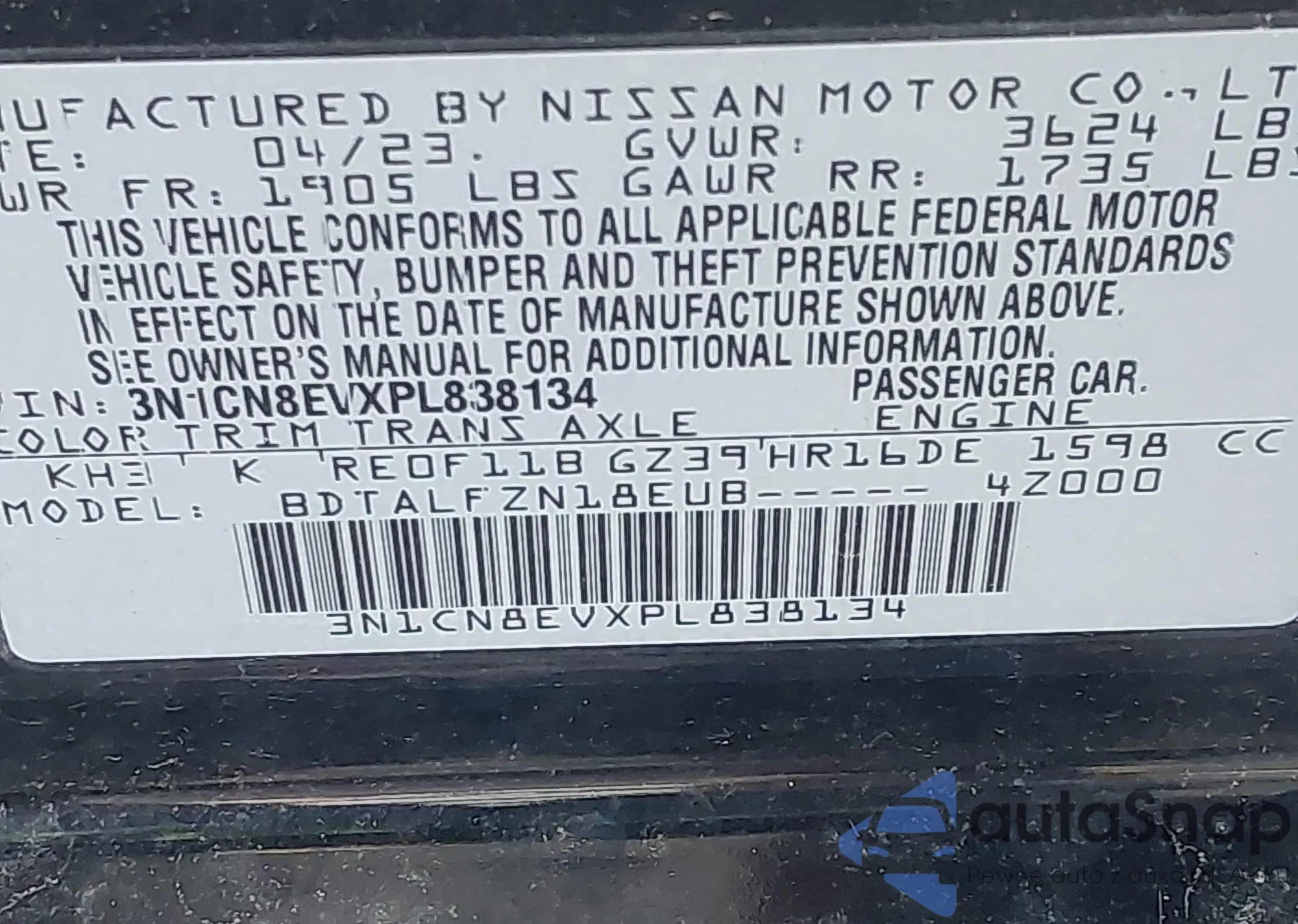 • VIN 3N1CN8EVXPL838134