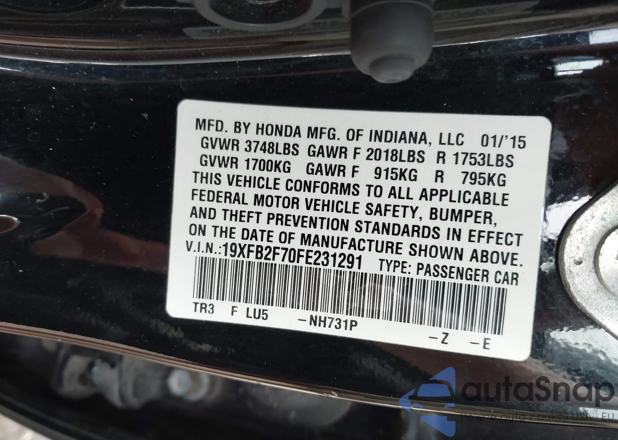 • VIN 19XFB2F70FE231291