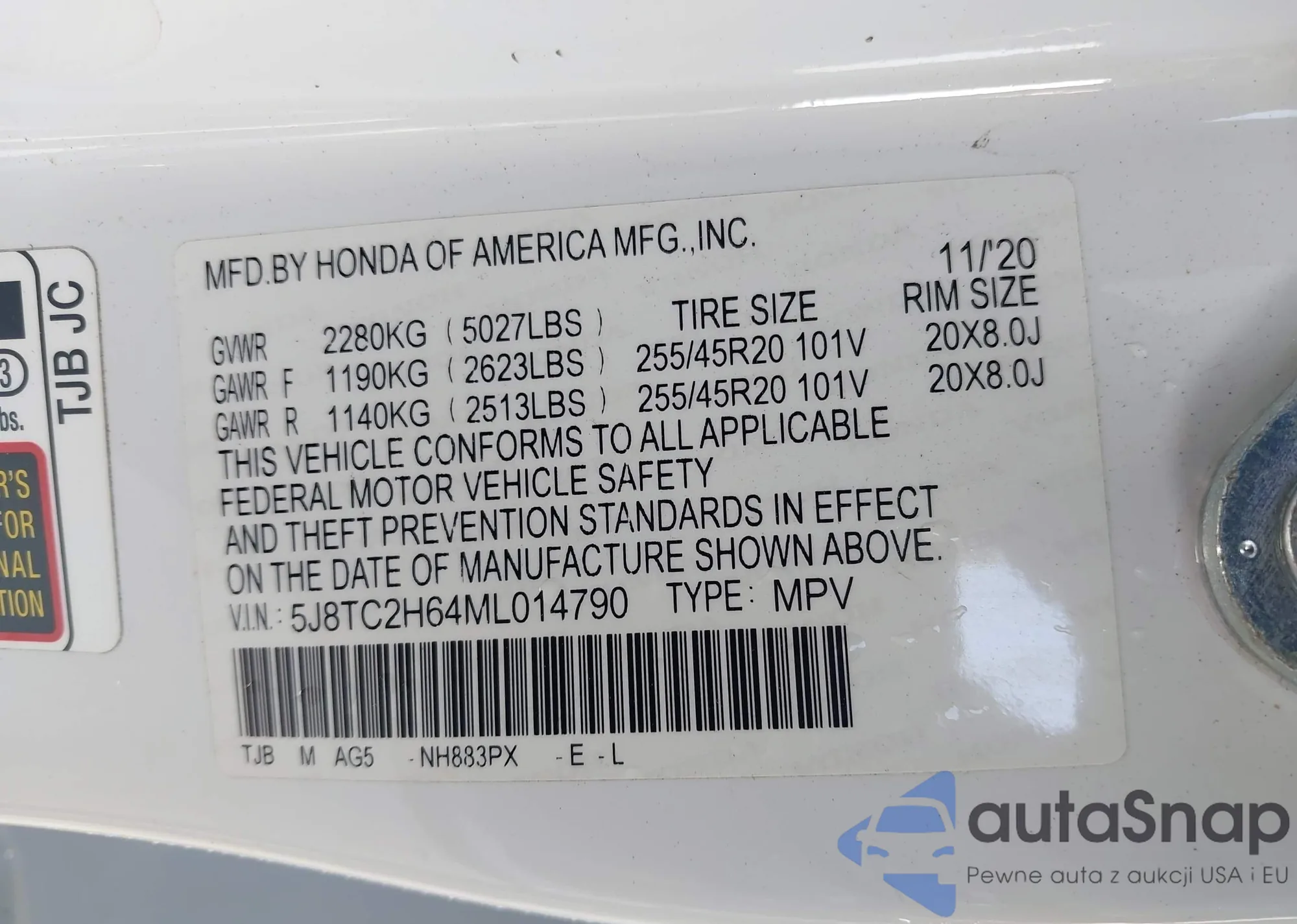 • VIN 5J8TC2H64ML014790