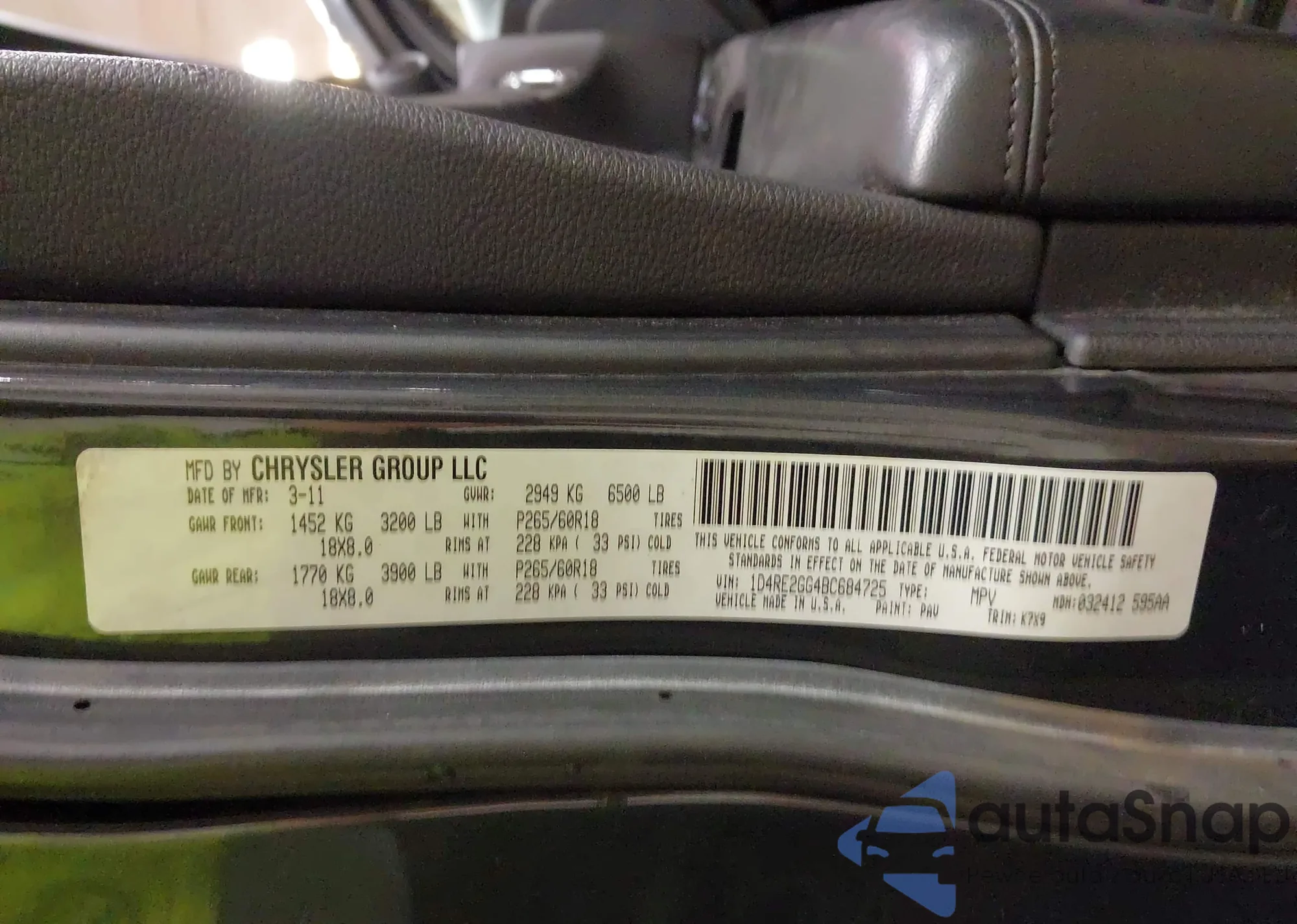 LOT: 43193929 VIN: 1D4RE2GG4BC684725