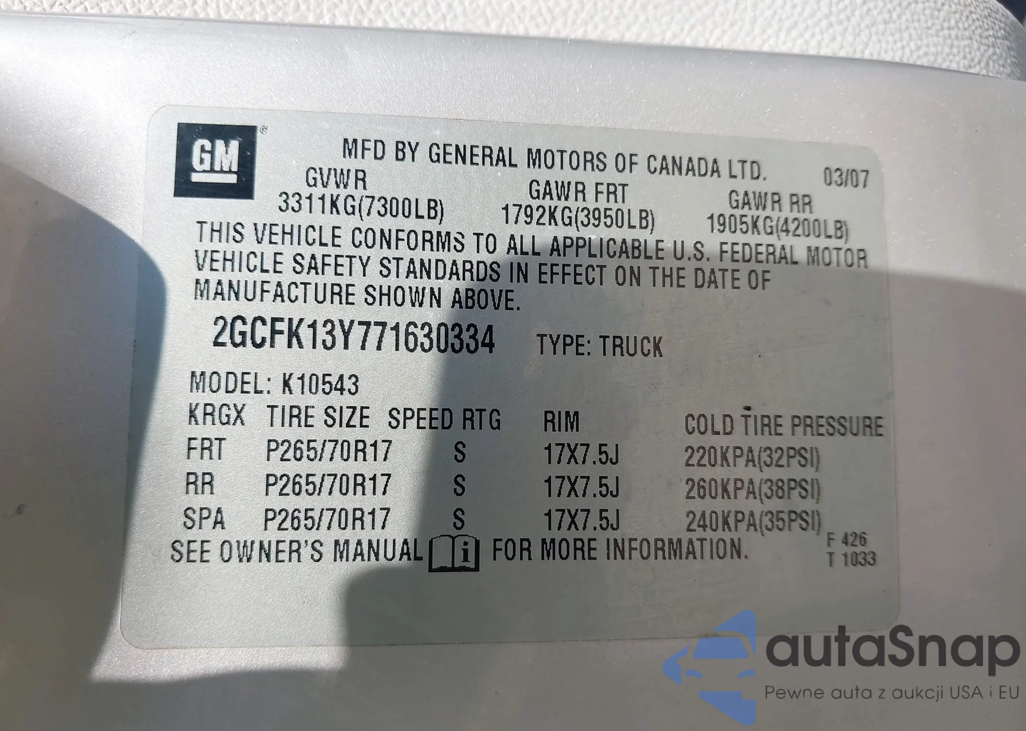 LOT: 43190238 VIN: 3GNDA23P26S540526