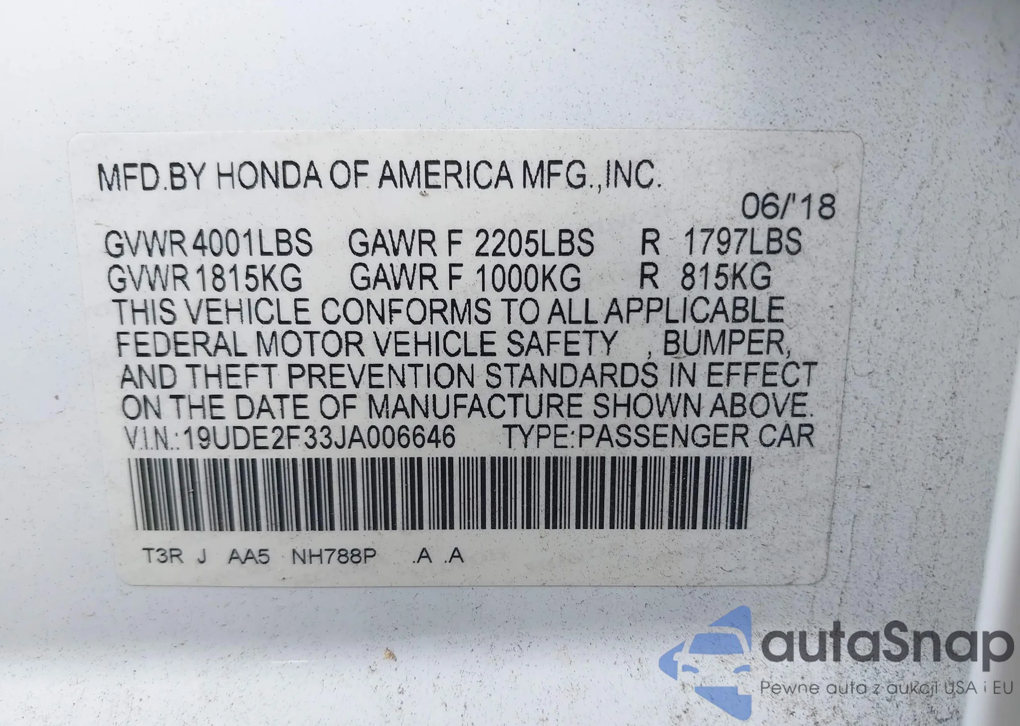 • VIN 5J8YD4H3XJL017239