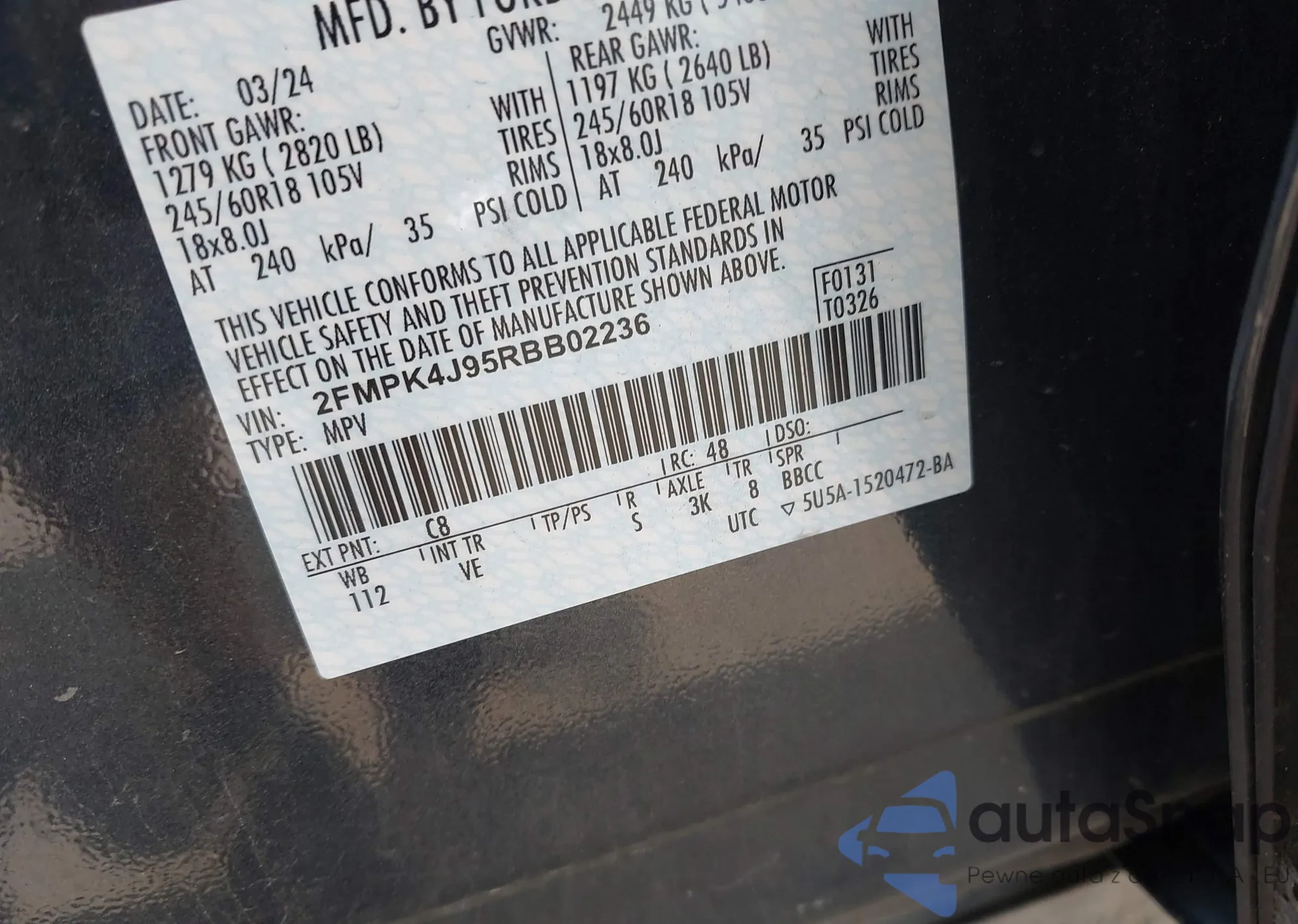 LOT: 42746575 VIN: 2FMPK4J95RBB02236