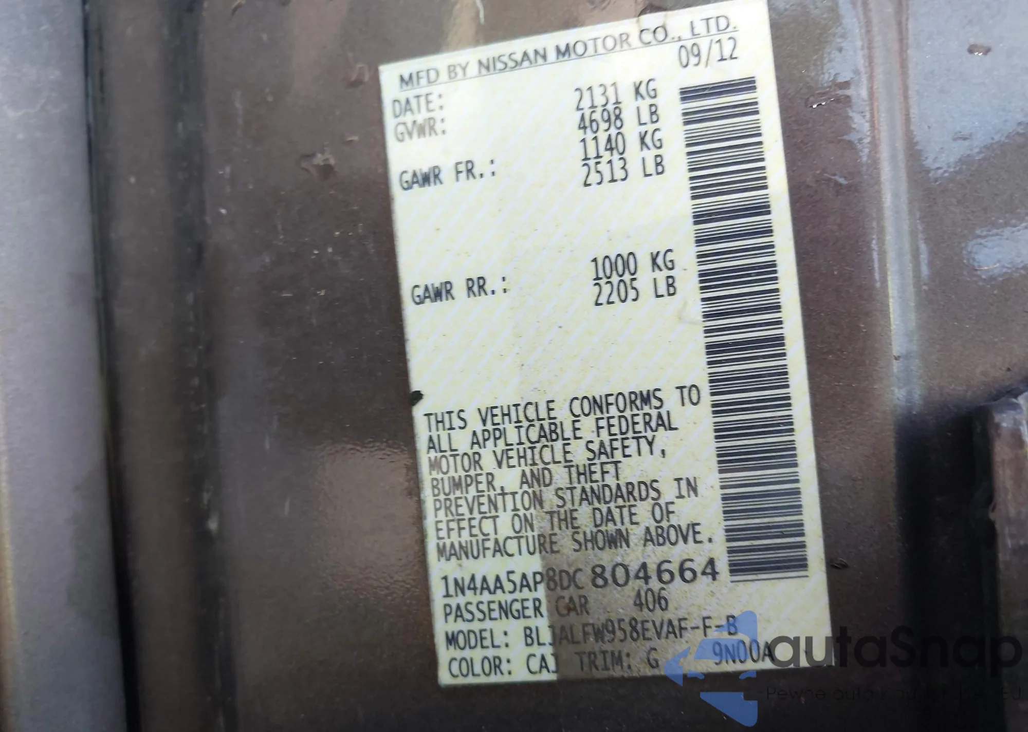 LOT: 42754998 VIN: 1N4AA5AP8DC804664