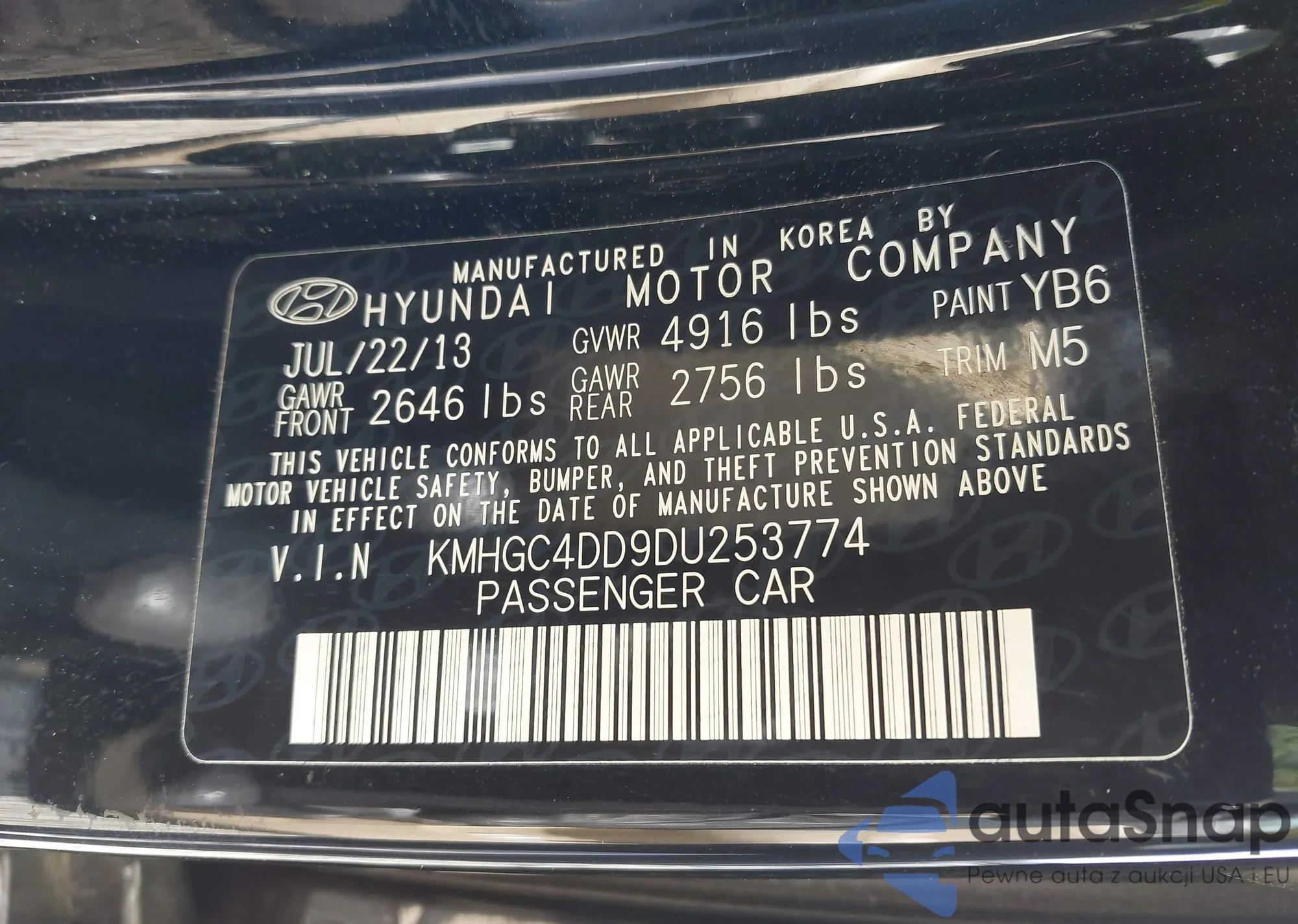 LOT: 42766076 VIN: KMHGC4DD9DU253774
