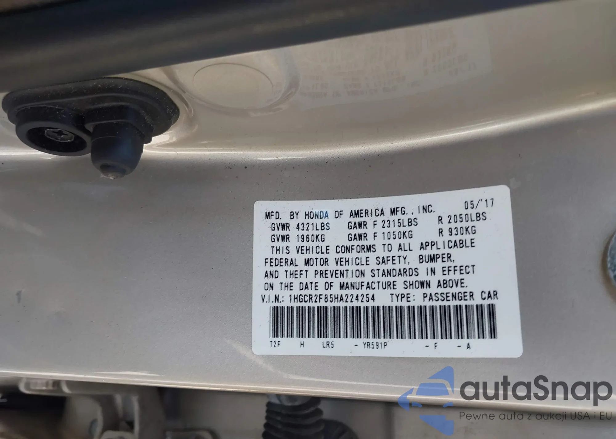 LOT: 42770110 VIN: 1HGCR2F85HA224254