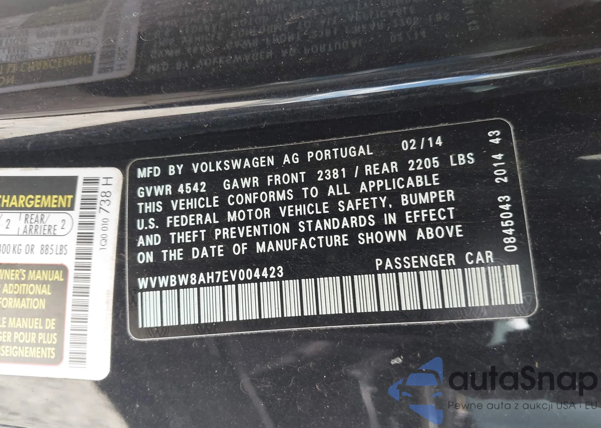 • VIN WVWBW8AH7EV004423