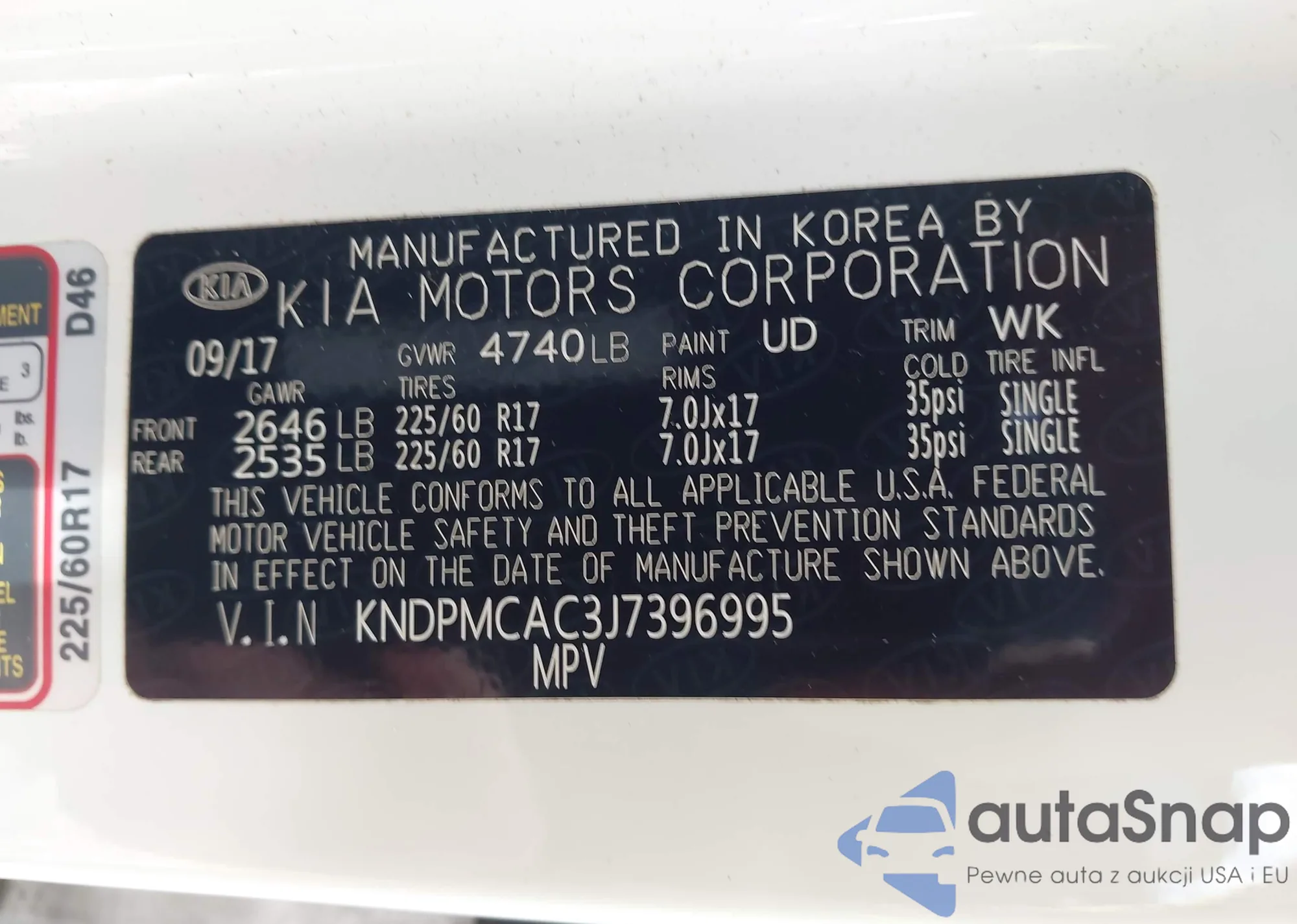LOT: 42740505 VIN: KNDJP3A55K7696022
